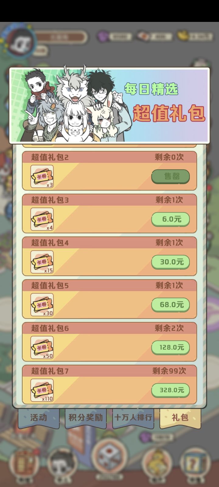 氪金方面 这个头像礼包好像是我18块纯头像什么作用都没有,建议不要买,还有其他的超值礼包也是离谱没必要去买,想要排行榜第一的就每天都把可以元宝买到的买了,攒起来全拿去抽就行,这个买完不会消失下次可以接着用
