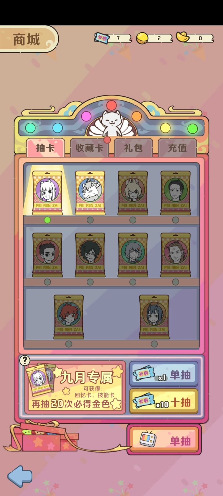 #游戏攻略 非人哉王牌员工不出意外的话,将于本月之后正式公测(还不确定还不确定还不确定)。如果大家对公测之后应该怎么玩还有所疑问,可以来听听我的建议,希望能帮助到大家!首先,元宝不要乱花!元宝千万不要乱花!!!我们走到小店格子后可以用钞票兑换元宝的,当我们元宝足够多时,我们可以点开左下方商城。注意一下,上方有【抽卡】【收藏卡】【礼包】【充值】四个选项,如果我们直接在【抽卡】与【收藏卡】中购