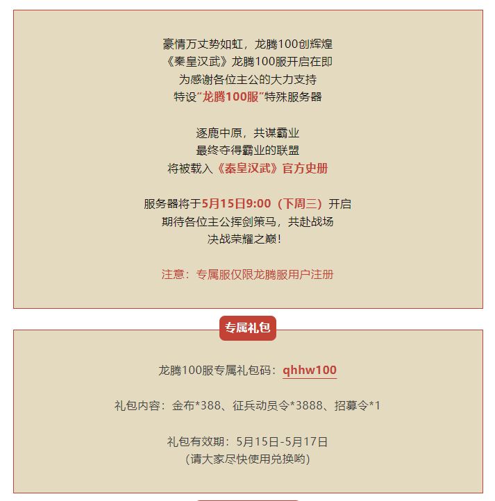 【新服预告】豪情万丈势如虹,龙腾100创辉煌!