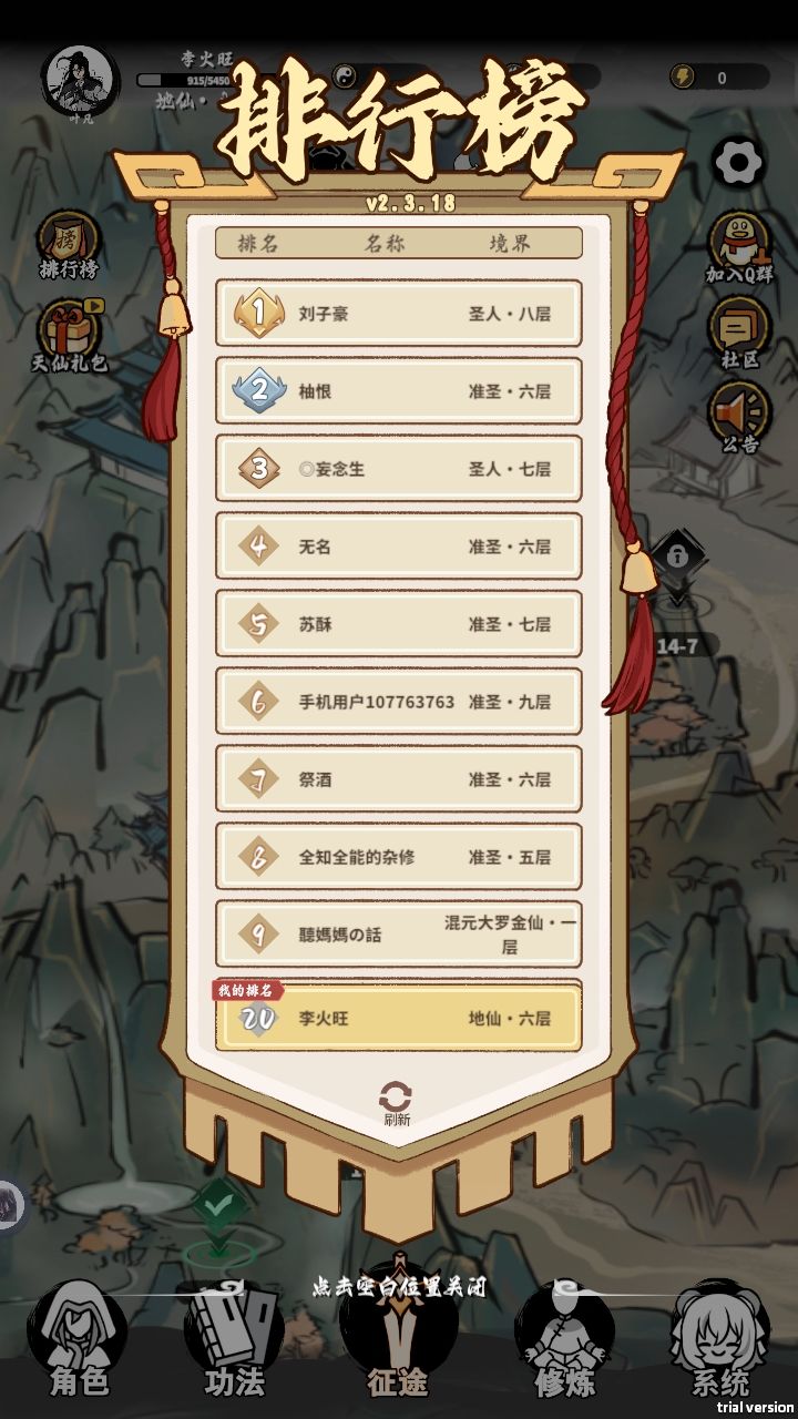 打不过了,天仙太弱了,连圣人十层都打不过😕