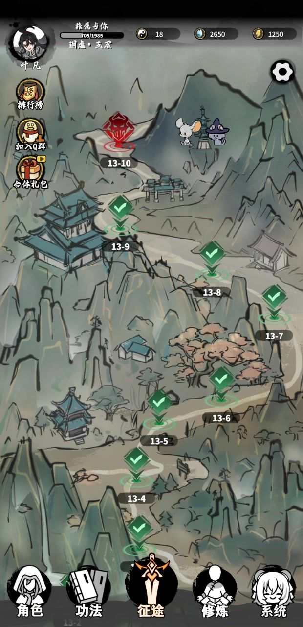 有修为拿修为,优先拿多属性加成的比如先天道体这种,然后压修为过关,就属性点不要用完把技能调配好技能天赋该抽的抽,卡关的时候属性点看着点用,前期用两三点就行后面五六点过关也够了,后面属性点慢慢就攒起来了,技能修罗,无极,丛刃必带练气打金丹永远不卡关,全通后把属性全点上还能打个榜,前几都差不多,第一还是第五看选天赋的运气了,助大家早日通关