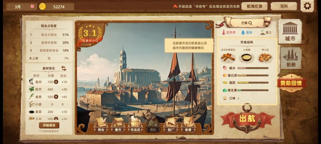 #冬日宅家生活 6元买断制的独立手游,可以免费试玩, 大航海模拟经营,全世界推广美食, 也有一定的策略玩法,可以试试看。