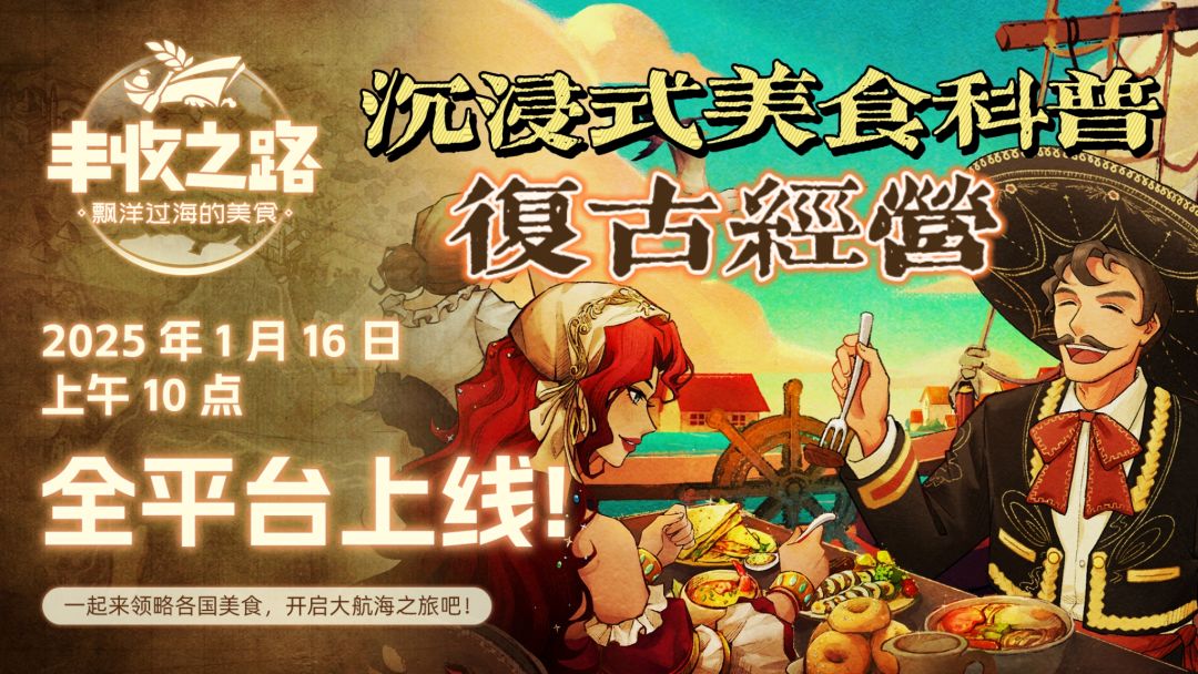 美食科普模拟经营航海冒险游戏《丰收之路》正式定档啦!我们将于2025年1月16日上午10点在全平台上线![表情_酷]#单机游戏 #发现好游戏 #宝藏厂商 #游戏安利 #游戏推荐