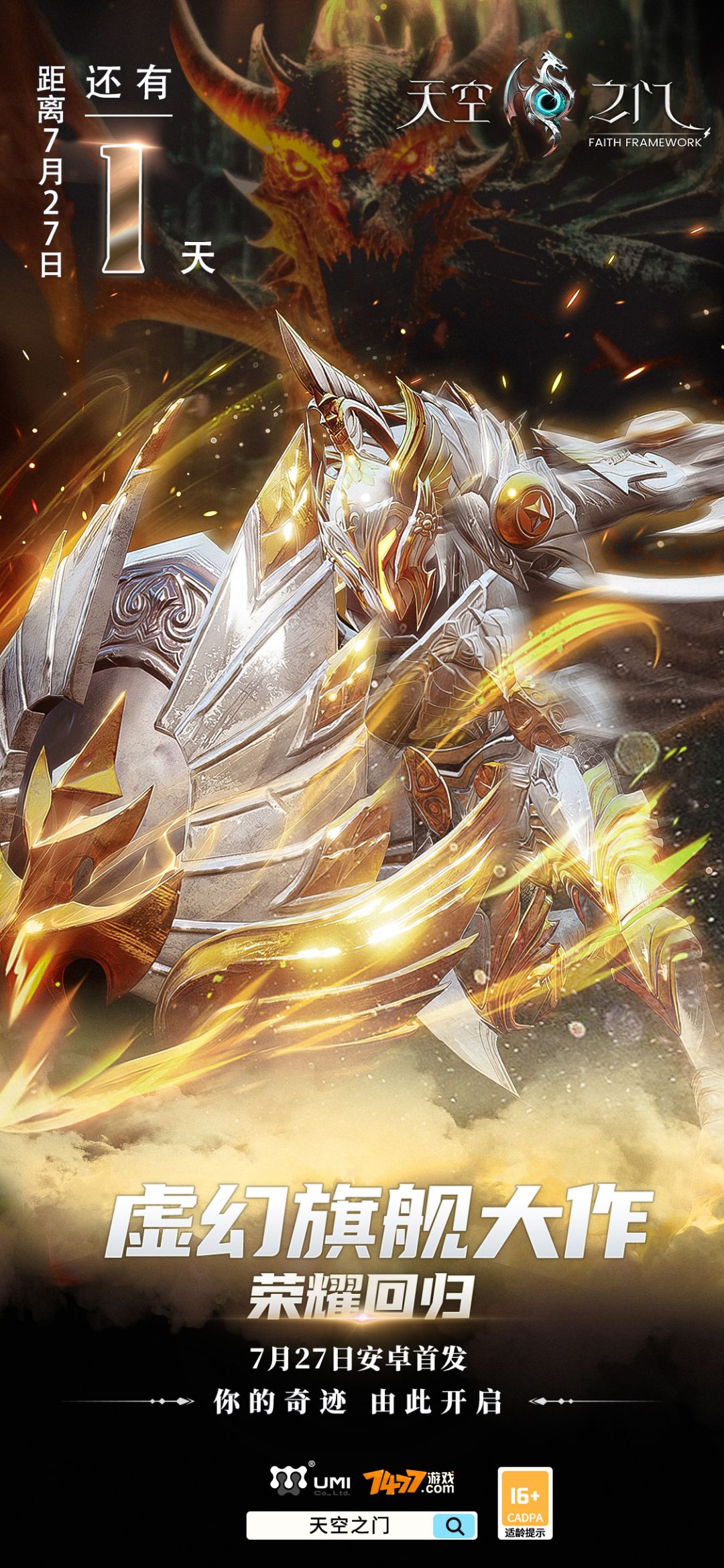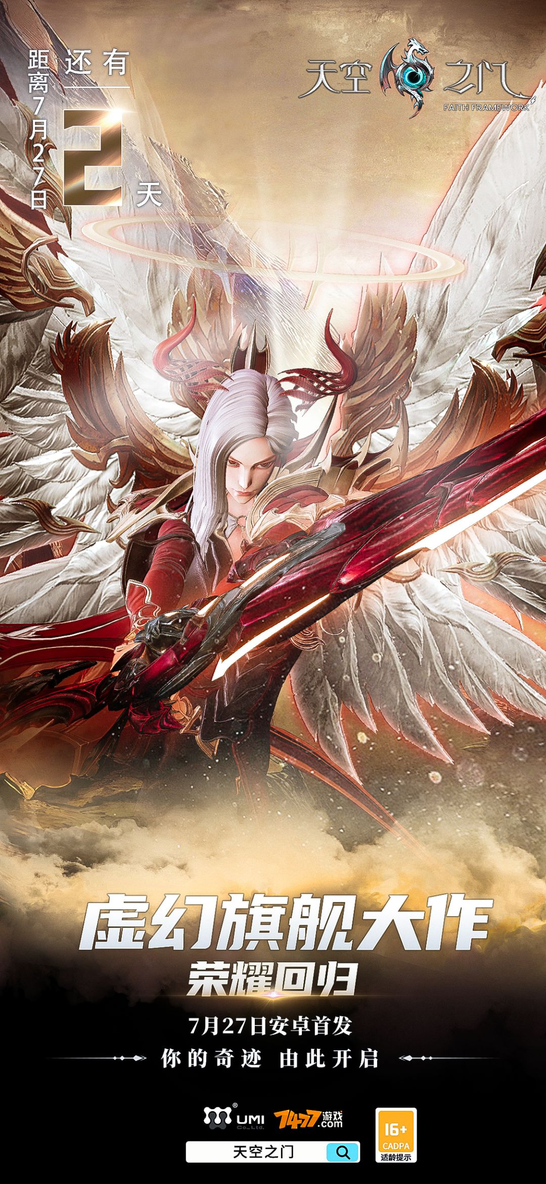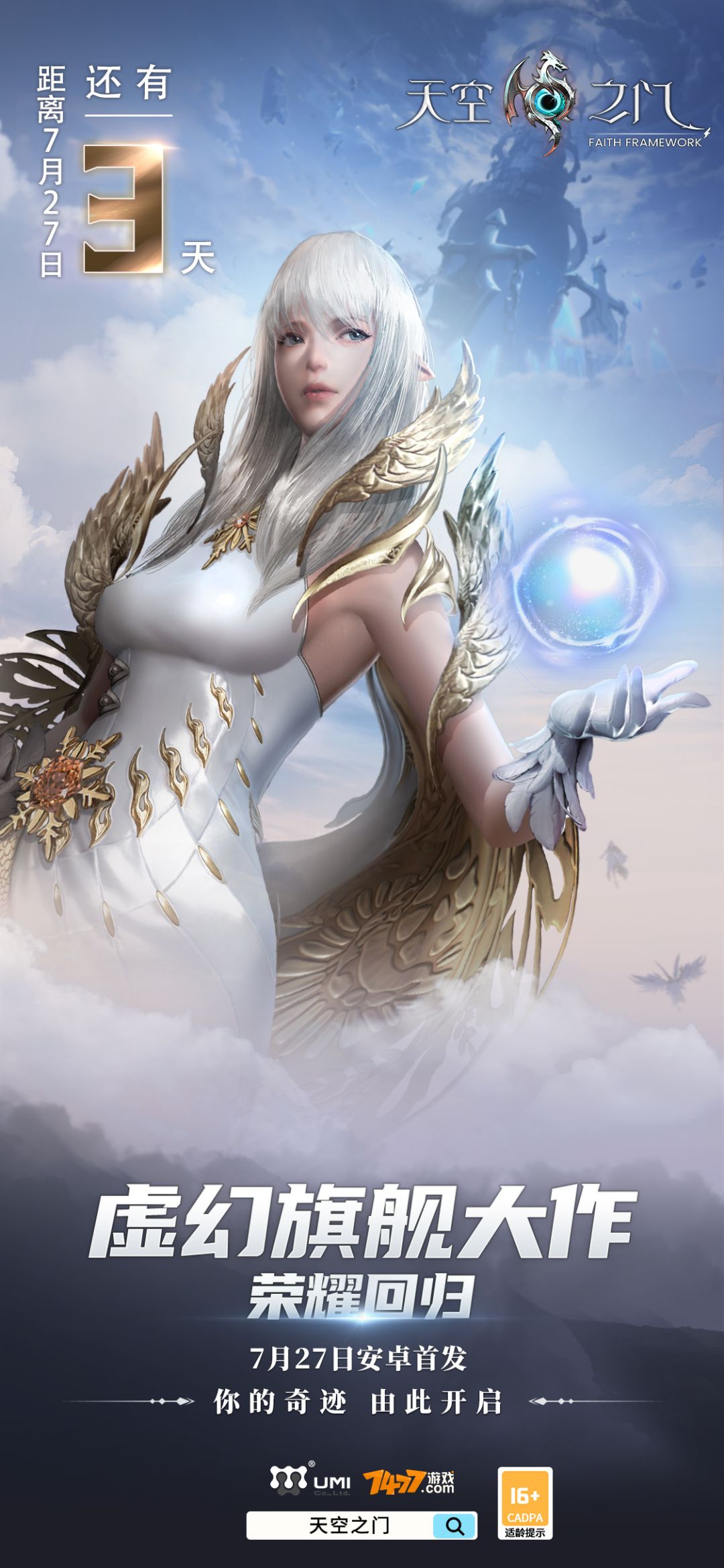 距离7月27日《天空之门》全平台公测还有3天! 距离7月27日《天空之门》全平台公测还有3天! 距离7月27日《天空之门》全平台公测还有3天! 重要的事情说三遍! 天空翱战,军团相争,激情boss,超多玩法等你来玩!《天空之门》诚邀您加入我们,打造你的强大天启,开始您的冒险之旅吧! 游戏内有多位强力角色供你选择,每位天启都有属于自己的技能和定位,熟悉他们的技能玩法能发挥出最大的威力,击败更强的bo