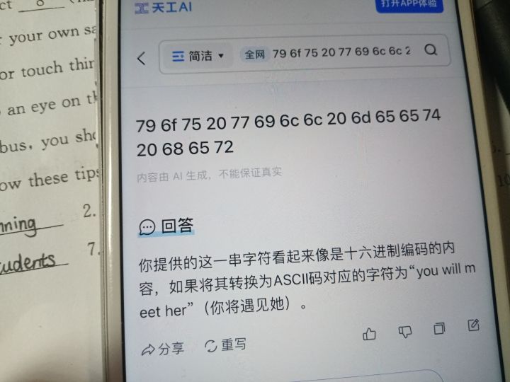 在经过多款AI的验证后我确认了彩蛋抽样数据的信息此信息为ASCII码,转换结果为you will meet her,意为“你将会遇见她”
