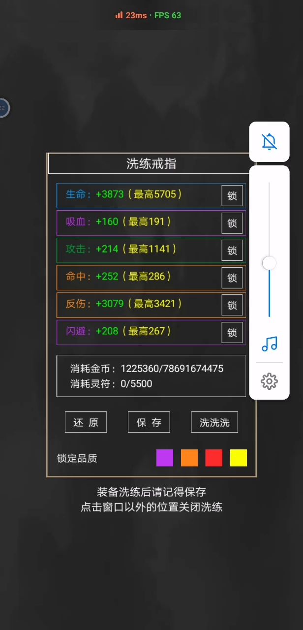二品开始每一千级强化会有个坎,从几十亿慢慢升到几兆才能升级一个部位,所以金币不够用!灵气,灵符三品之后精炼会用很多,精炼一次2w灵符,每升一级+2w灵蕴一品之前全换离线卡,加进度,一品后换加速卡宗门挂第三个任务,加贡献,灵石意义不大洗练无所谓,有材料、时间都可以搞一搞,后面都是好几天才刷一次宝箱不需要省,只要你有同品法宝,都可以开命中的话,我跟你解释一下:宗门挑战需要的是命中!地狱塔需要的是群攻和战力,主线需要的是综合,因为boss是各种各样的属性!三品后命中会逐渐溢出的,因为加速卡开始入不敷出——属性到了,但没加速卡过关。提前给你打个预防针!