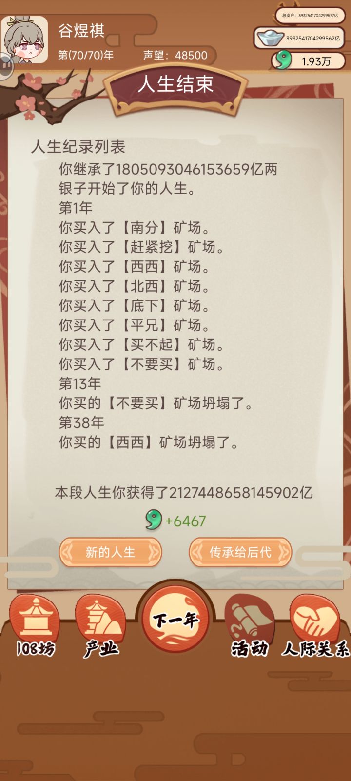 这是bug吗?为什么每隔几年都有这么多钱?只能无限的挖矿刷勾玉造孩子,太无聊了