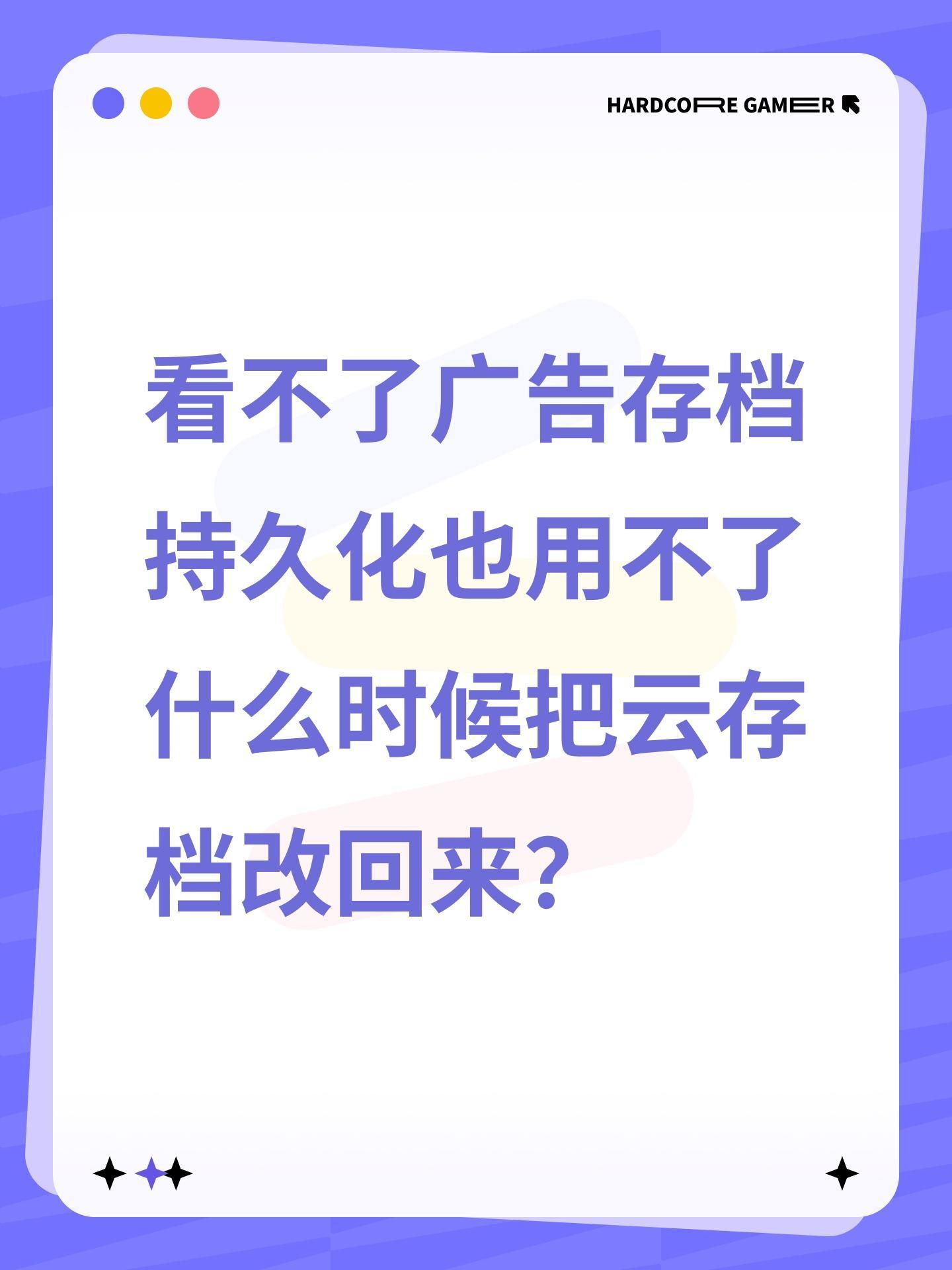 看不了广告存档持久化也用不了什么时候把云存档改回来?@官方