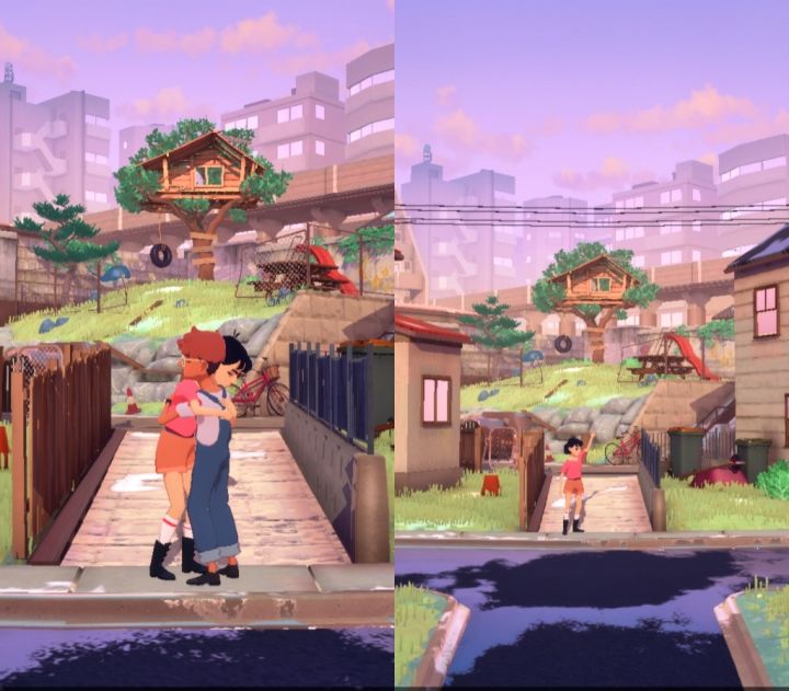 叙事:虽然整个游戏流程很短也没有任何文字或对白,但每一个章节都围绕两人的共同回忆展开,让玩家得以瞥见两人长久相处所诞生的深厚友谊。游戏的最后,男孩搬家离开。但相信过往的经历和友谊会让互相思念的人再次相见。
