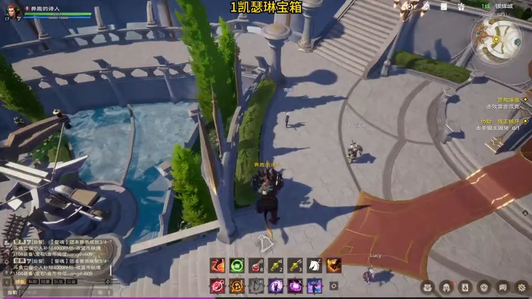 探索攻略: 银辉城城区: 银辉城郊外 钥匙位置一览图: 1号钥匙位置在皇宫内部左边的书架上; 2号钥匙位置在台阶旁的花坛里; 3号钥匙位置在雕像手上,可以从栏杆上向雕像手上跳; 4号钥匙要在喷泉边缘交互,搜寻几次之后能拿到; 5号钥匙位置有一只蜥蜴,打死之后获得一个精密零件,使用之后提交任务即可,蜥蜴大概5分钟刷新一次,选取不到是因为人太多,零件可以组队获得,最好组队去打; 6号钥匙在浮空台子的桌