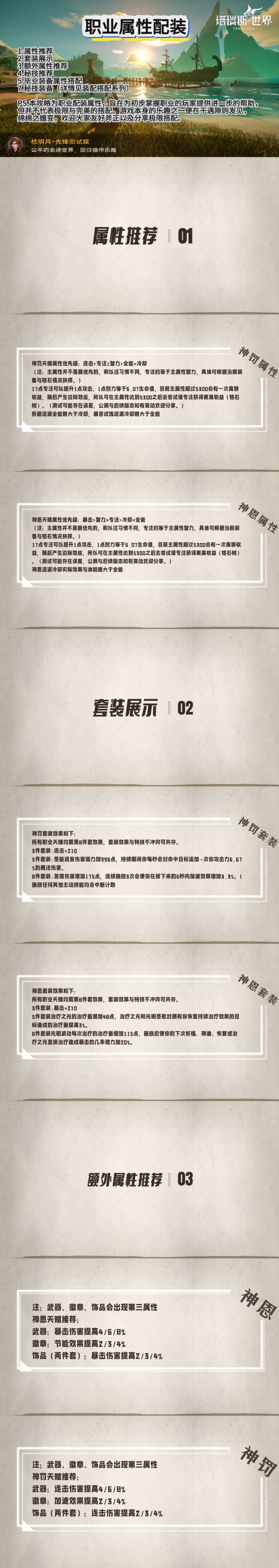 塔瑞斯世界全职业配装系列-牧师(长图) 数据来自测试服木桩,公测版本或有变化,会存在偏差,且属于个人打桩,仅代表私人主观总结,如有差错还请见谅。 不过游戏本身的乐趣之一便在于遇隙则发见,绵绵之嬗变,所以欢迎大家友好斧正以及分享更好的搭配。 如果大家愿意可以加群一起玩! 790034644 810865004 #塔瑞斯世界 #塔瑞斯世界开荒征集