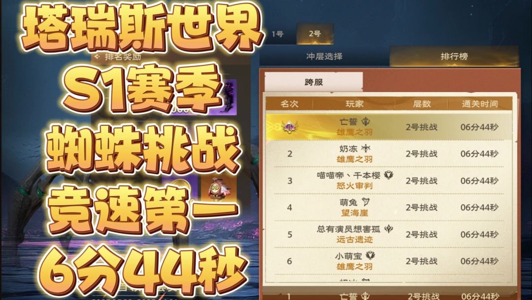 塔瑞斯世界S1赛季蜘蛛挑战竞速6分44秒封榜国服第一