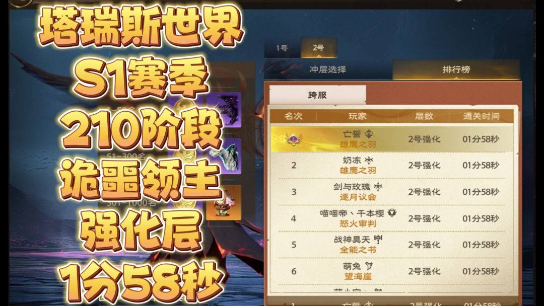 塔瑞斯世界S1赛季60级诡噩领主强化竞速1分58秒