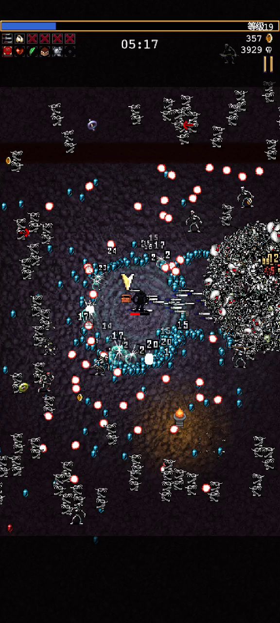 无需超进化柳叶刀和护罩打法存活四十九分钟 血战倍速模式下 加满攻速 冷却 持续时间 经验加成 收集范围 骷髅的士兵加成拿柳叶刀 护罩 圣徒水 魔力歌谣 五芒星 前期主升五芒星 带血色天灾 五芒星后期超级武器成型收割经验速度极快 魔力歌谣和圣徒水超级武器附带减速 控制死神 与柳叶刀相互补充 拿秘法牌复活提高容错 运气好有几率杀死红色死神