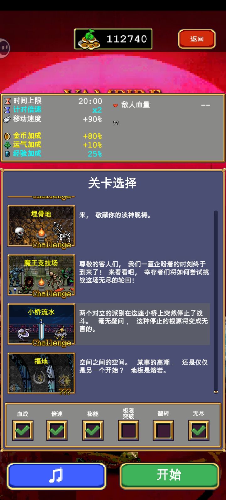 解锁一个其他攻略博主都没解锁的隐藏角色,我个人是用修女在小桥流水地图,拿到所有地图装备以后一直往右走,大约25分钟遇到大量宝剑怪,全部打死以后出现隐藏角色怪,打死就解锁了