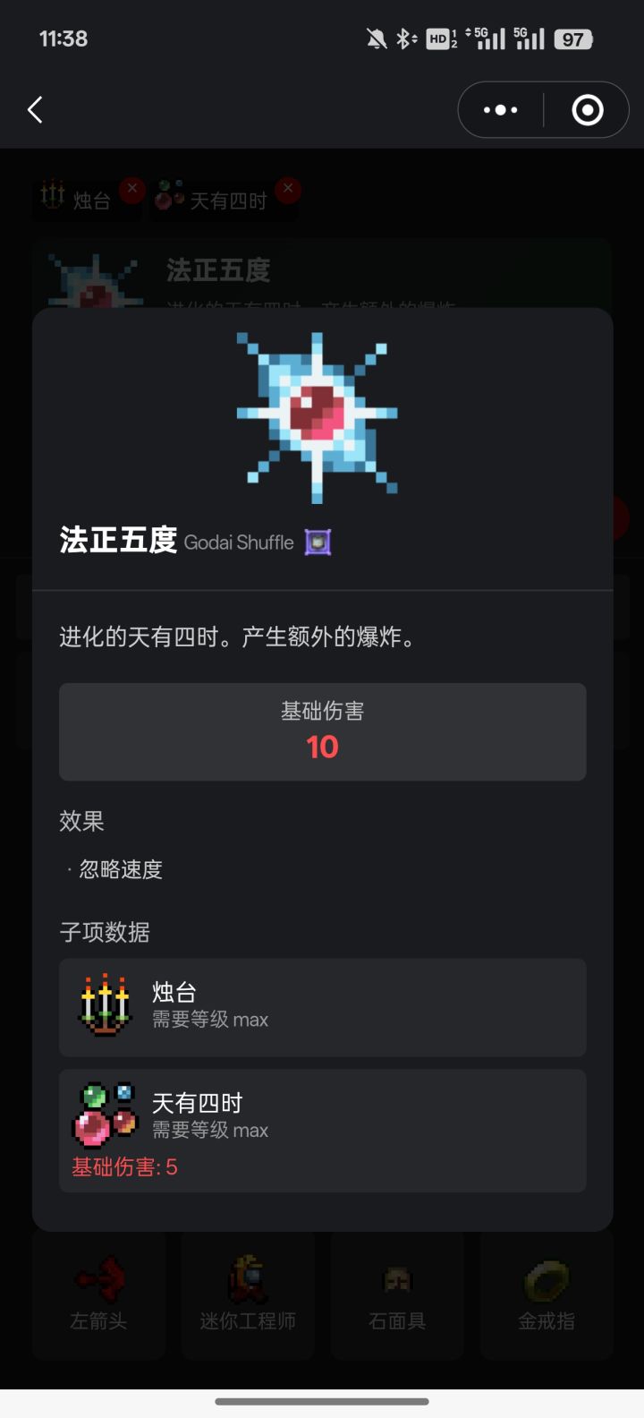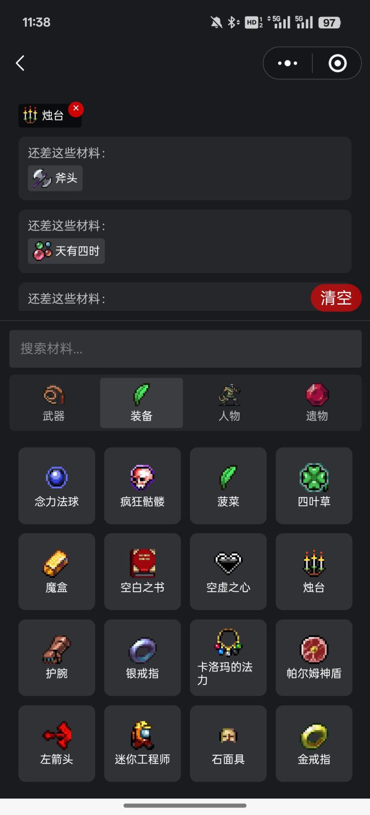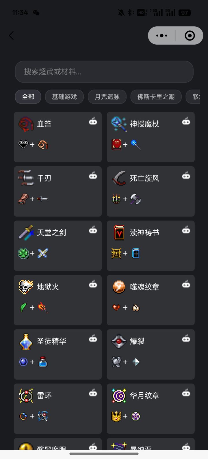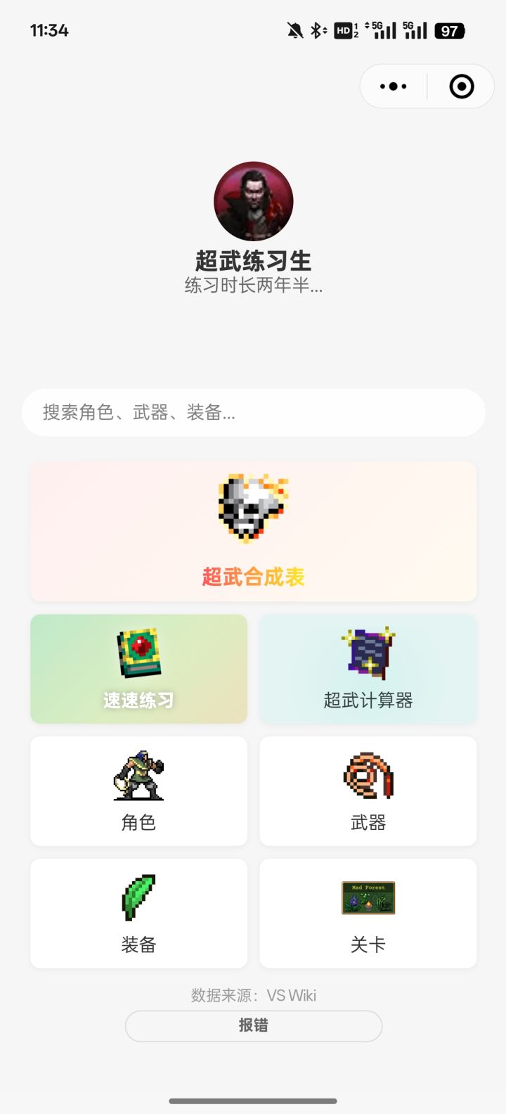 #吸血鬼幸存者 苦于自己记忆力太差,用大佬分享的合成表经常打开马冬梅,合上马什么梅?而且眼都看花了游戏里的合成表也没解锁完,很多超武不知道怎么弄,所以自己动手两天半,制作了这个小程序,可以查合成表,可以输入现有装备推导缺的装备,还做了练习题模式,加深记忆,后续准备增加详细的解锁条件说明。微信小程序搜索超武练习生就可以搜到,数据来源vs wiki,我用openai做了下翻译,有的地