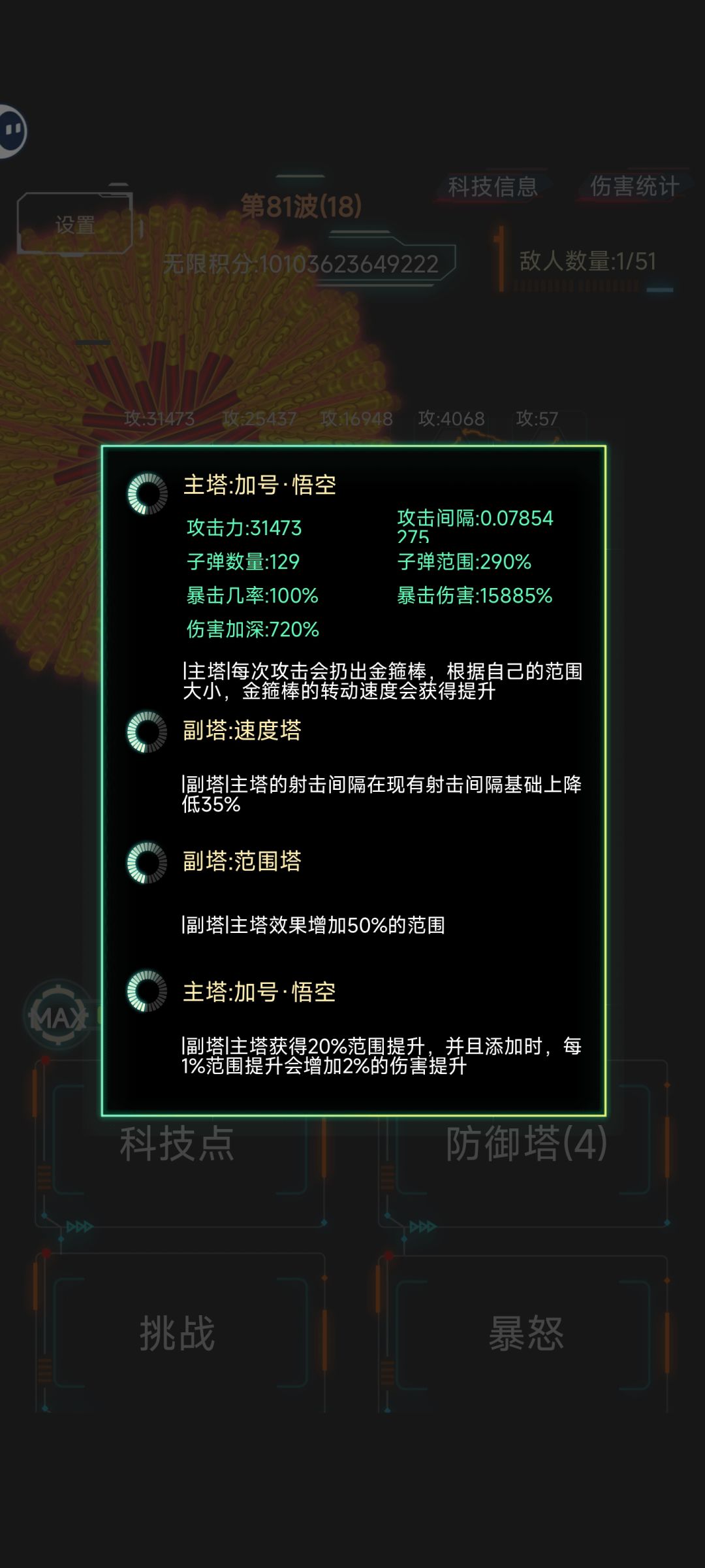 科技选择最佳顺序:商人直售-商人直售-转商人塔-商人直售--转加号塔-解除限制 开局1-1猴子 范围-范围-锁定 2-2恶魔塔 转商人-优先-范围-爱心-锁定-速度-120-240秒吃恶魔-范围需要6次以上 1-2,2-1,2-3,3-2 商人塔 范围-爱心-猴子 1-3,3-1,3-3,商人塔 爱心-异形-商人 塔优先范围副塔,提高buff范围和数值,子弹数量影响数值。1-1猴子打得过,商人塔