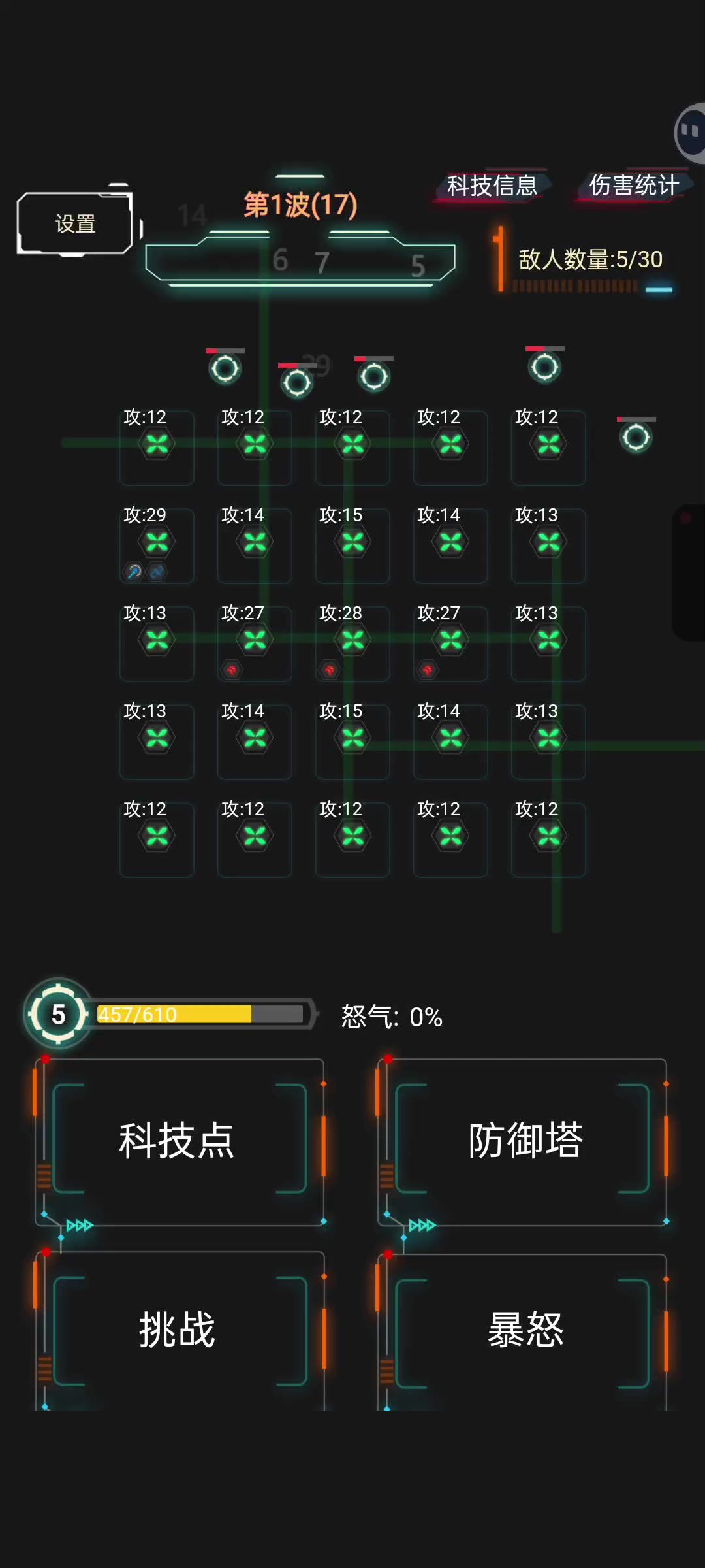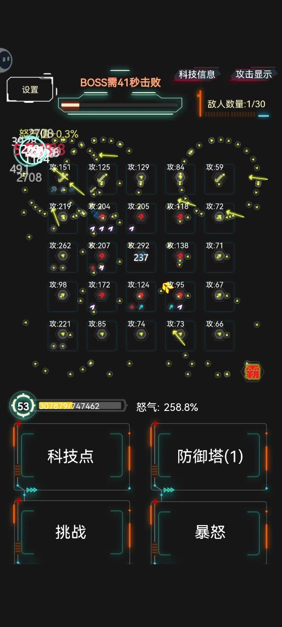 【定泡速】主c,【连爱爱】加伤,恶魔塔随意,科技选择:【加子弹】【加范围】,越后面选择【霸】越好,当前等级多少级,选【霸】的时候就可以获得多少额外放置防御塔的个数。
