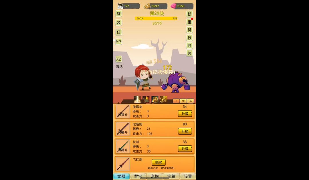 挺不错的一款挂机游戏,有各种功能,签到,装备,任务,加速,符文,新手奖励,重置系统,技能系统,寻宝系统,关卡奖励系统,武器,背包,宠物,宝箱各种系统待你来探索#攻略#游戏推荐#单机游戏#游戏资讯#休闲游戏