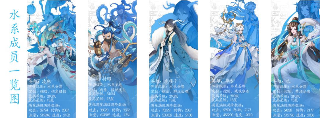 叮咚叮咚~之前已经给各位大大介绍了我们《绿洲野兽》的水系圣兽啦,今天给大家在线总结一下水系的核心英雄! 纵览水系阵营一共有法师1个,战士2个,肉1个,辅助3个,控制4个。 虎嗤子 沃月 槃 凌珑 持昭 玄枢君 虞 巴 雾司 流祈 毕方 以上为本次水系圣兽英雄盘点的主要内容