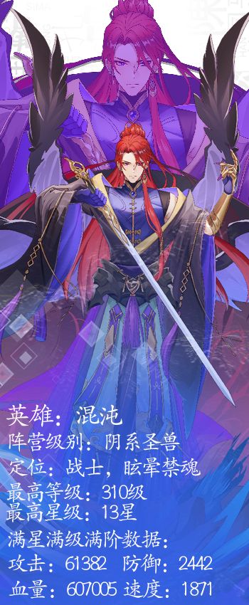 那就让他们试一试,看看能不能将我阻止 -混沌 【混沌】 昵称:陆吾 人设印象:太初之黯 定位:眩晕禁魂 职业:战士 阵营:阴系 级别:圣兽 【人物传记】 混沌不记得自己睡了多久。 他记得第一次睁眼的时候,四周什么都没有。他饶有兴致地观察着这个虚无迷惘的世界,然后就看见这团厚重的黑色中间突然撕开了一条缝,见证了被称为天和地的存在的分离和独立。 随后他就在新生的大地上到处闲逛,见证了世间万物