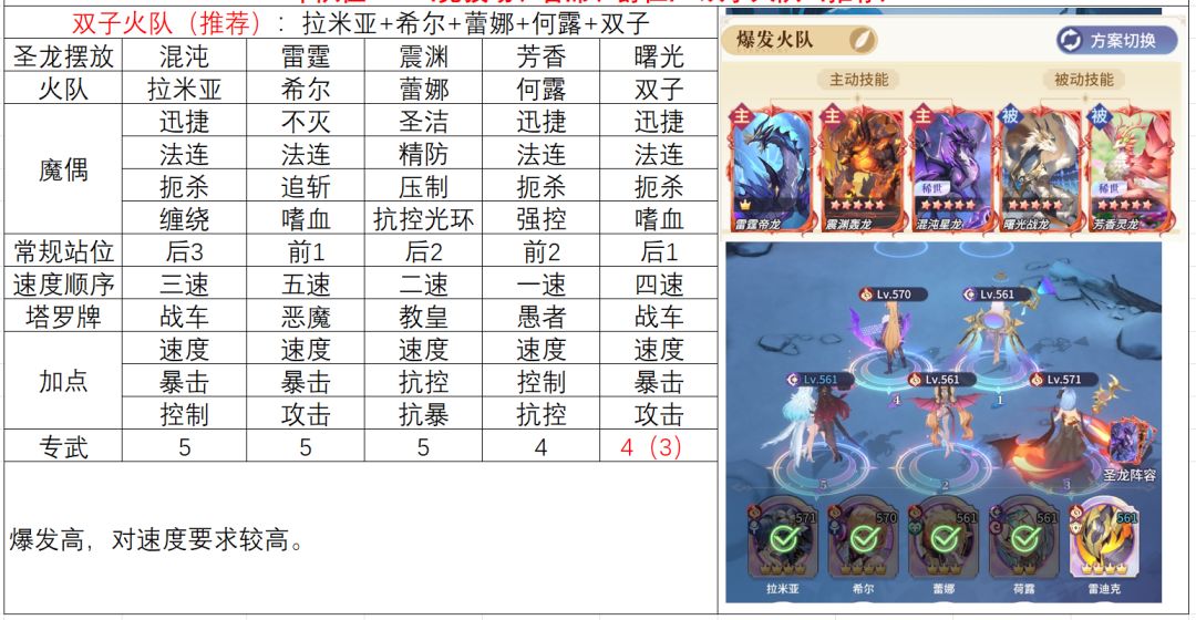 速度做为PVP最重要的属性,远大于其余一切属性。跨服逐光是唯一不氪金获得速度的途径,跨服组队就非常重要。玩了接近5个月,组了6个队伍,基本都成型。谈一下组队心得。 1.优先考虑体系,目前4套辅助体系火系蕾娜;冰系2套莱昂+买买、光头+露;土系傻白+米沙;这4套可以组成4队了。 2.这游戏从开服开始,大氪其实是可以玩火,一直霸服那速度礼物持续压制;双子出来拉个双子,格挡双子做2队;中间养个狼,冰盾狼
