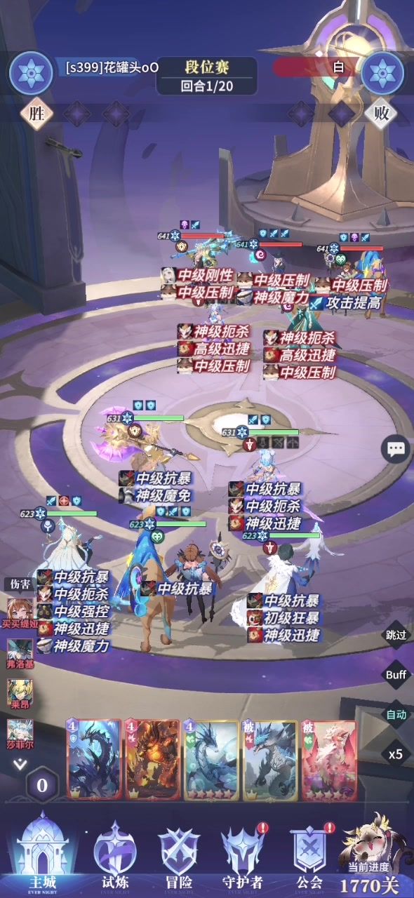 如题 段位赛防守现在没有星环龙我是知道的。 今天看战报输给了一个不会输的对手 让我觉得很奇怪。点进去仔细看了下。 运气差是一方面,阿库娅被冻了好多次不出手。 但是让我不理解的是第四回合我阿库娅一套深海已经打没了对面所有盾,对面买买复活放了技能加盾,接着就第五回合了,为什么第五回合我阿库娅没出手,买买放的盾会弹死阿库娅?技能介绍是两回合后没打破才弹啊? 怎么算我也没算出来第四回合结束放的盾到第五回合