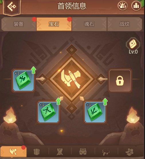 首领信息第三个选项页查看魂石信息。 相比宝石与装备直接作用于首领,魂石是安放在建筑上的特殊强化石。当建筑达到指定等级时(如铁匠铺达到16级解锁魂石槽位),其中分别16级、20级、22级、30级、33级的铁匠铺等级解锁镶嵌魂石的需求。便可进行魂石的安放。魂石与宝石一样,同时为一个兵种提供生命、防御。 攻击的属性加成(如战士魂石为战士提供生命防御攻击三种加成。),当一个建筑所有槽位都安放了魂石之后将会