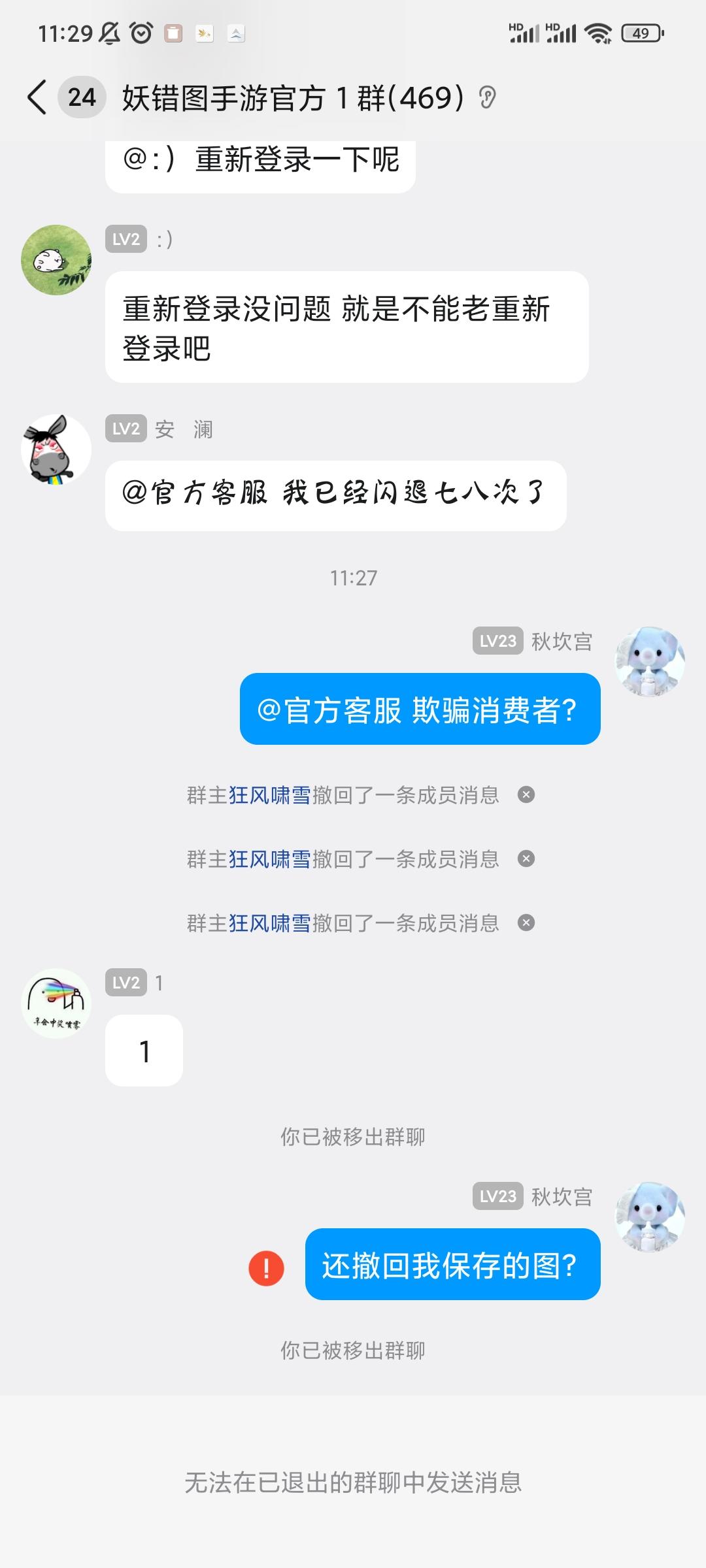 官方欺骗消费者,直接撤回记录,踢出群聊