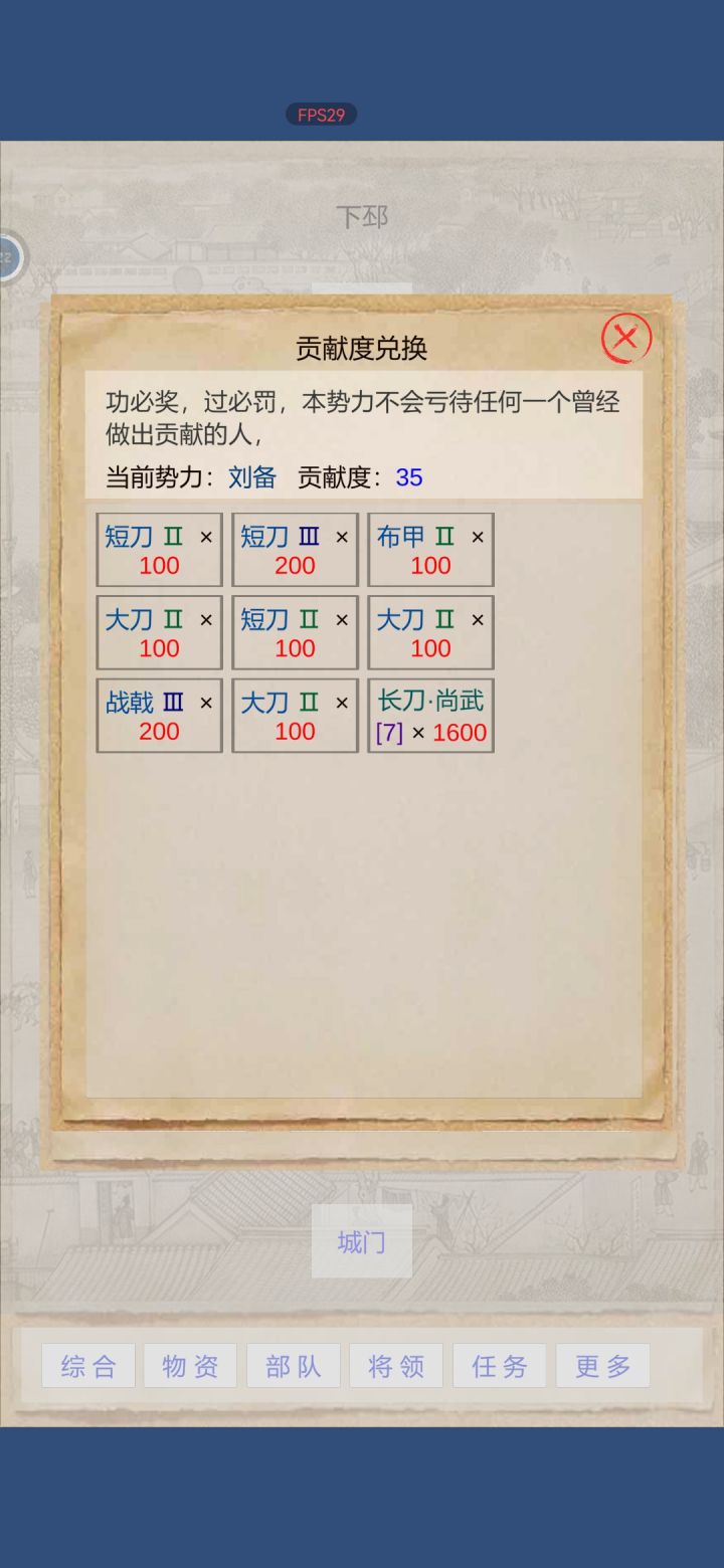 游戏可玩性,成长性不错!就是现在很多东西还待完善,招将没用,不能攻城,不能招牛逼武将(刘关张赵吕夏)本来穷的一批,想去跑商的,结果发现惊天秘密(BUG)!同一个商店物品,例如正常价格100,绿颜色的就是80%价格,红色价格就是120%。你到同一个商店,买绿色的,点确定后,再打开商店,刚才绿色买的那些物品,就变成红色的了!!!相当于80%价格买进来,点确认再打开同一个商店,可以120%卖掉!
