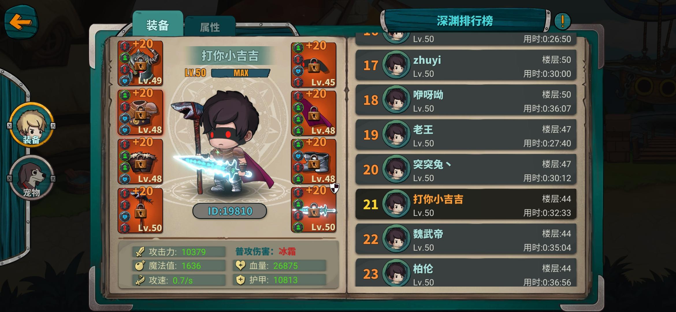 本人也刚玩,摸索了几天,锤子,剑,斧都玩过,不过难度高,打boss太累,一不小心就被秒,关卡好了拉怪容易被远程秒,刚刚已经通关,献上攻略 1-26级,锤子,剑,法杖,哪个武器好玩哪一个,只点范围伤害,属性全体,自动回血点满,打boss跑位慢慢磨 26以后只玩法杖,因为26级法杖技能能点满,装备只选择减少冷却的哪个多穿哪个,蓝装也可以!冷却加速到90左右,可以无限♾️晕boss了,刷图也可以挂机,宠物也不用死 全智力加点,带智力宠物,法杖3个晕技能点满6级,回蓝点满,其他随意 打boss节奏 火龙卷-普攻俩下-冰龙卷-普攻俩下-地刺-普攻一下-火龙卷……一直打到90关,爬塔也无敌! 其他事项: 1,强化/武器26级后刷到冷却10以上的法杖就强化,不管蓝,绿,想刷到传说紫色带冷却法杖不要想了,其他不强化 2,宝石/26级后刷到冷却12以上的装备,就打4孔满宝石,不管品质 红色-攻击/蓝色-智力/绿色-体质或者血量 3,宠物选择A级智力都可以,最好是远程,不然它上去A容易死,宠物装备选择体质血量,理解为肉盾 4,用法杖打boss最好留100钻石💎容错,有些boss技能瞬发容易被秒 5,反正法杖yyds,先有刷装备的资本再满足你的想法吧,打小怪挂机,打boss手动,岂不美哉 给官方后期更新的建议 1,通关后词条可以洗,或者转移(增加通关后乐趣和奔头) 2,宠物经验共享,或者可以无消耗转移,增加可玩性