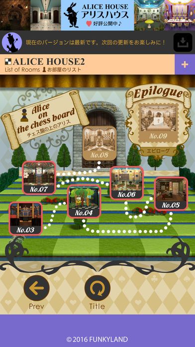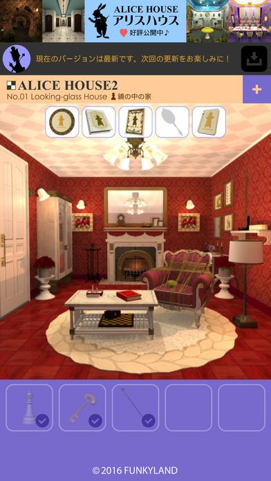 The popular FUNKYLAND game of escaping from Alice-themed rooms like "Through the Looking-Glass" by finding characters is now available as an App!