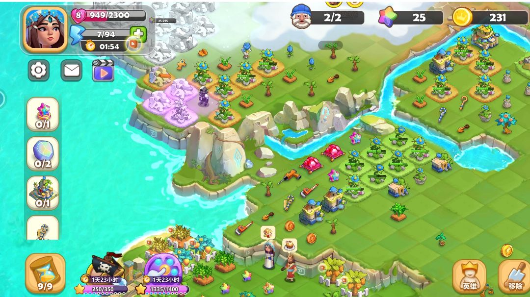 一、基础设定篇 1.基本玩法 (1)主岛 根据文明的不同,依次合成每个文明的英雄和奇观,建成的奇观每天可以收获产出物品,主要产出为经验道具(升级英雄),副产品包括艺术岛物品、青铜粉、红宝石粉、星星、铲子、树苗等。当前版本已开放了5个文明的10个英雄和10个奇观,具体如下: ★目前存在BUG,剧场和故宫显示产出是经验人偶,实际产出是经验宝典,神庙和长城是正确产出人偶的。另外根据BUG产生的图透,下一