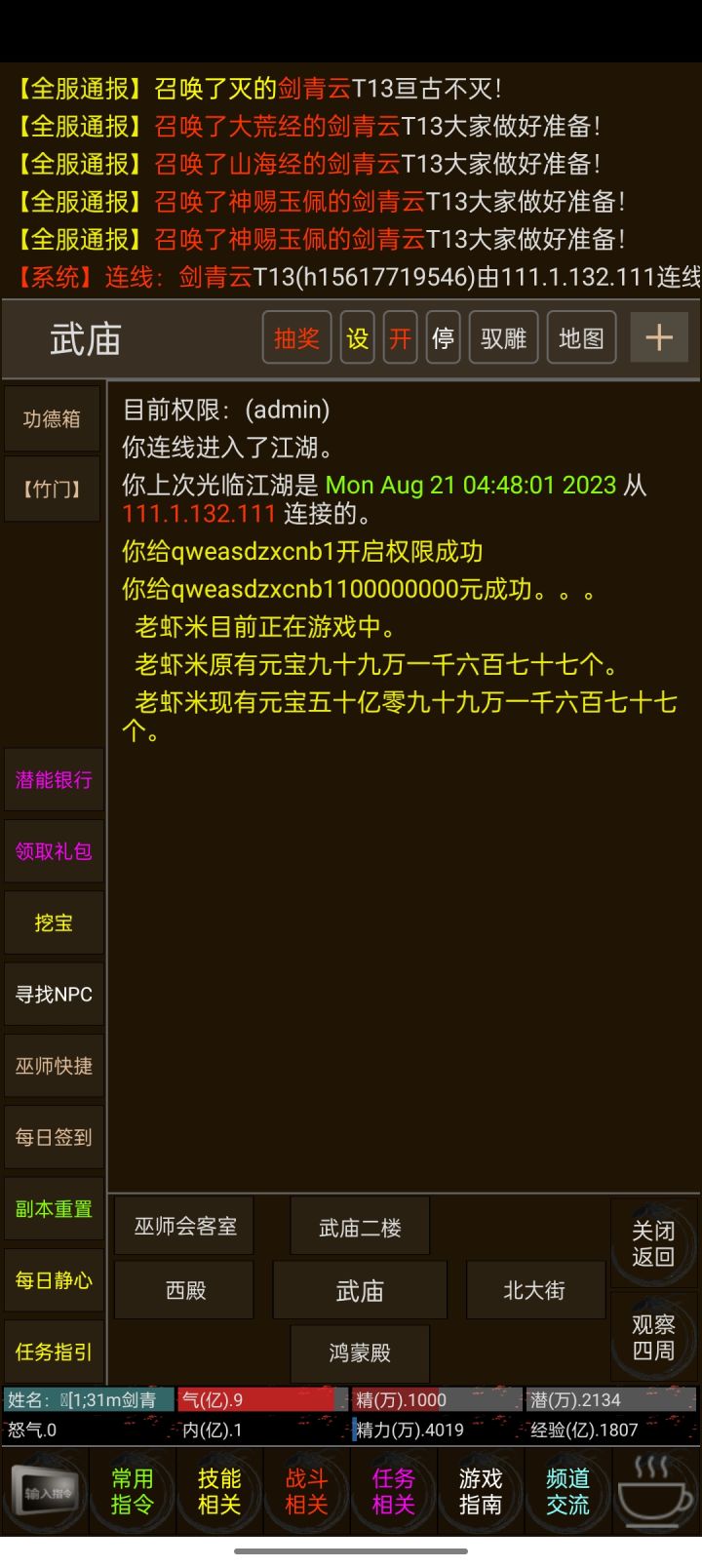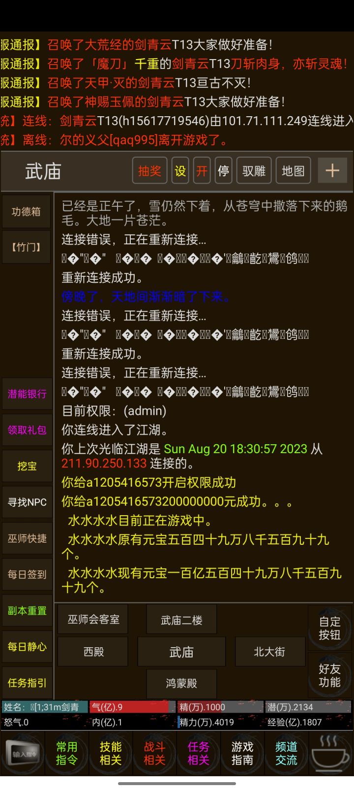8.21更新公告新增挖宝系统,可以挖出顶尖武学轮回剑,天火三玄变,武道三千真系列武学极品装备,玉佩,打造材料等每日签到获取,也可通过商城购买答题系统更新奖励,第一名可获得1神魄奖励,可用于抽奖所有副本奖励均调整,如遇闪退请调整自身属性即可#游戏种草计划#攻略#游戏安利#游戏讨论#游戏推荐#游戏资讯