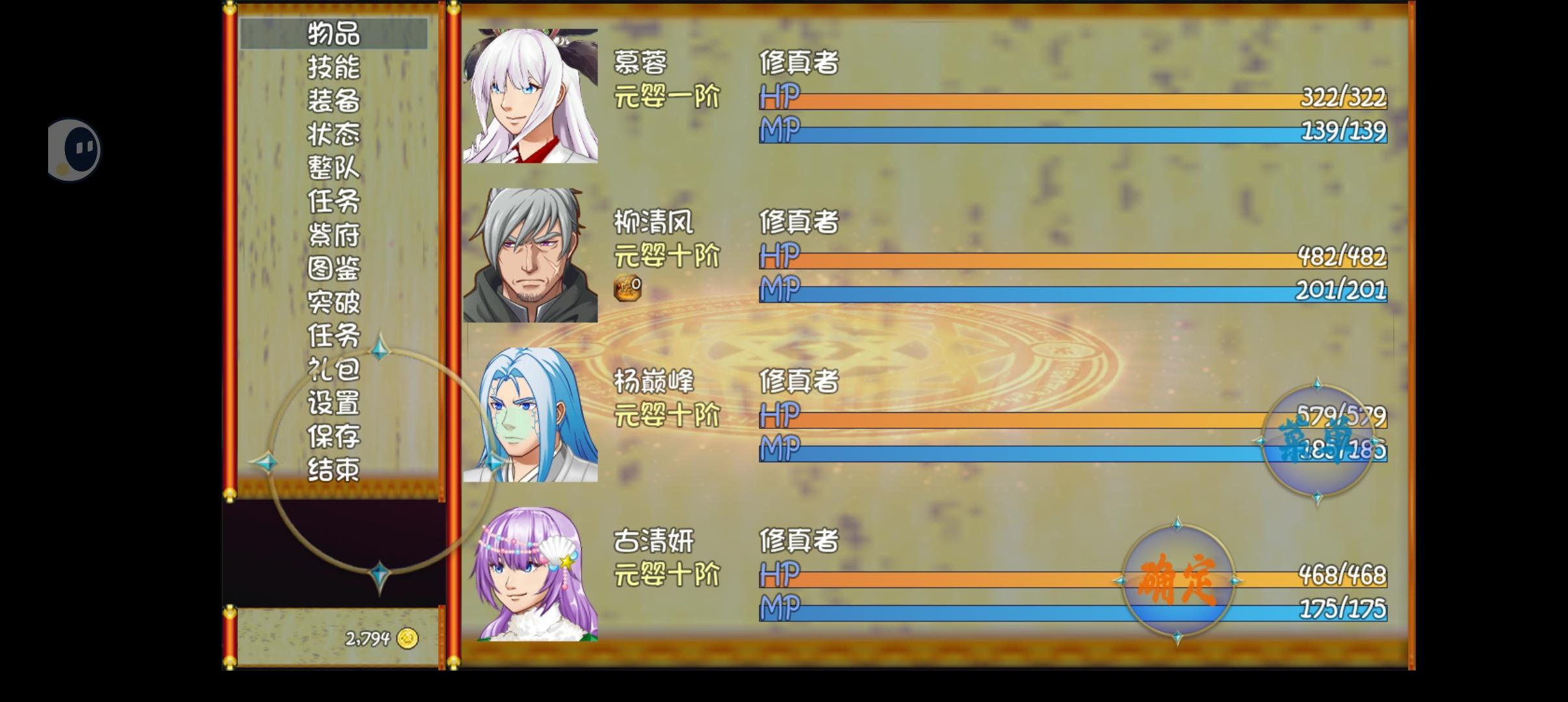 然后还有一个就是游戏的装备系统比较新颖(加分),魂灵开蛋有点像抽卡系统,单机开局礼包码领差不多100魂蛋,然后魂蛋30分钟领一个(筑基期开启),不同魂灵决定着不同人物的职业走向(刀、剑、盾、杖),刀普遍强势一点,剑也还行,盾杖有点拉胯。推荐阵容3刀1杖。