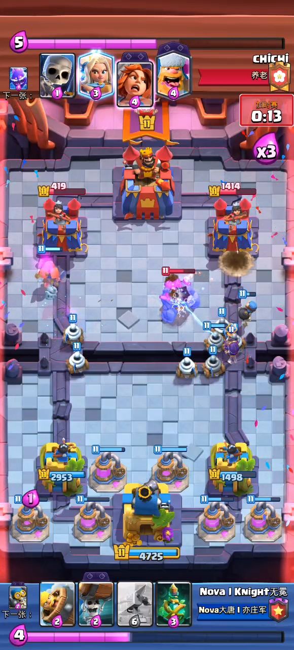 入坑不到一星期已经7500了,到底什么时候才有真人?这游戏万杯以下全是人坤吗?[表情_思考],看我3张图的时间,没有挑着截,从24点刷新打几局想拿宝箱,打了7连胜了,现在对面都是13级国王塔,压我3级,你们可以拿这卡组去用,多练习,我已经实践过了,狂暴可以换别的法术,我是觉得狂暴好用,可以补数值,但是打不了地狱龙这些,地狱塔还可以,但是可以算对面费用配合狂暴换塔,难打但是也不一定输,但是输就输了,