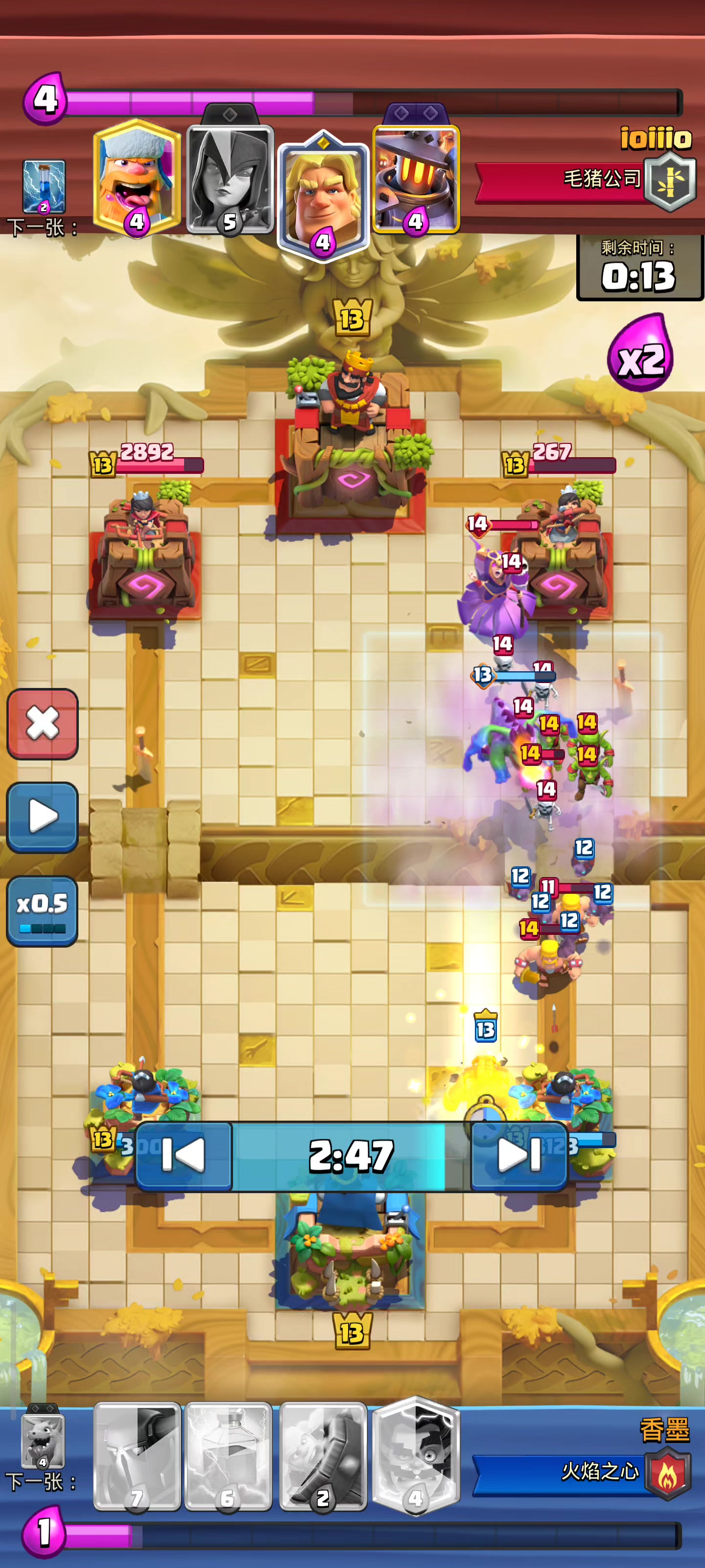 进攻核心:野猪骑士过牌、拉扯:哥伦冰人、冰雪精灵、小骷髅、防守核心:火枪手、加农炮辅助法术:火球滚木小费卡组有另一个优势——过牌快。在牌序好的情况下,出完第一个猪后以此过牌精灵、小骷髅、滚木、冰人只需要1+1+2+2=6费可以极快地过出下一个猪形成有力的进攻节奏,使对手疲于防守。但要注意不要随意的过牌,这会导致亏费并丢失进攻节奏