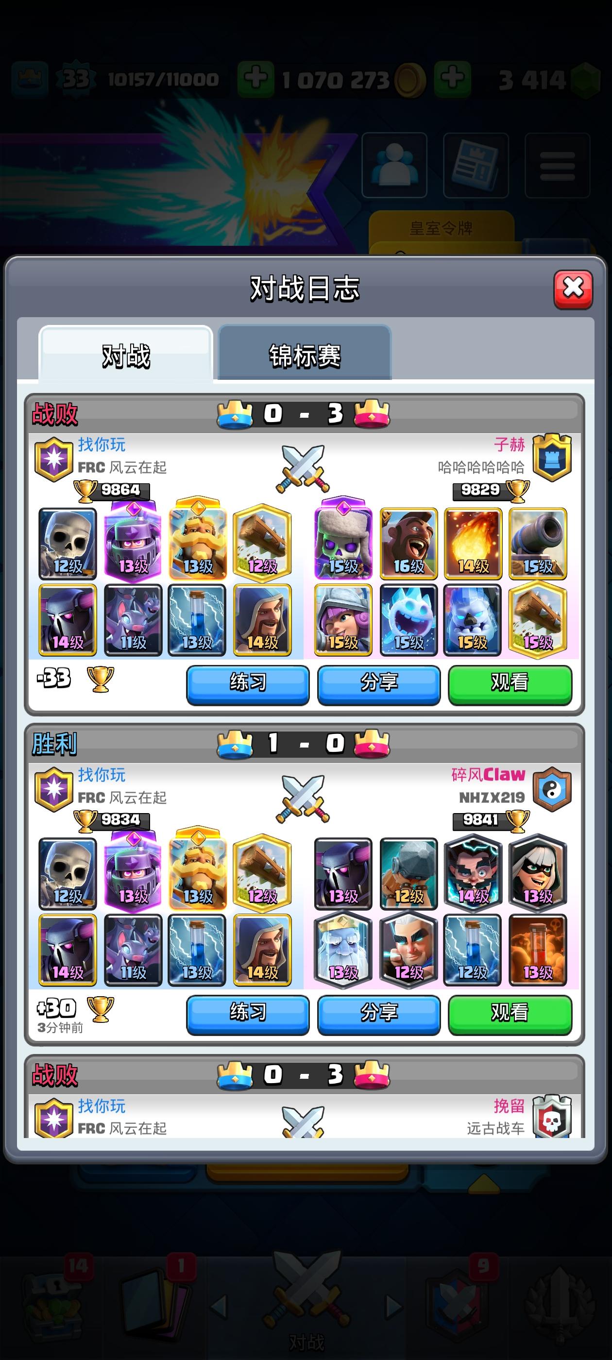 韩小萱之我在皇室战争玩等压记录贴