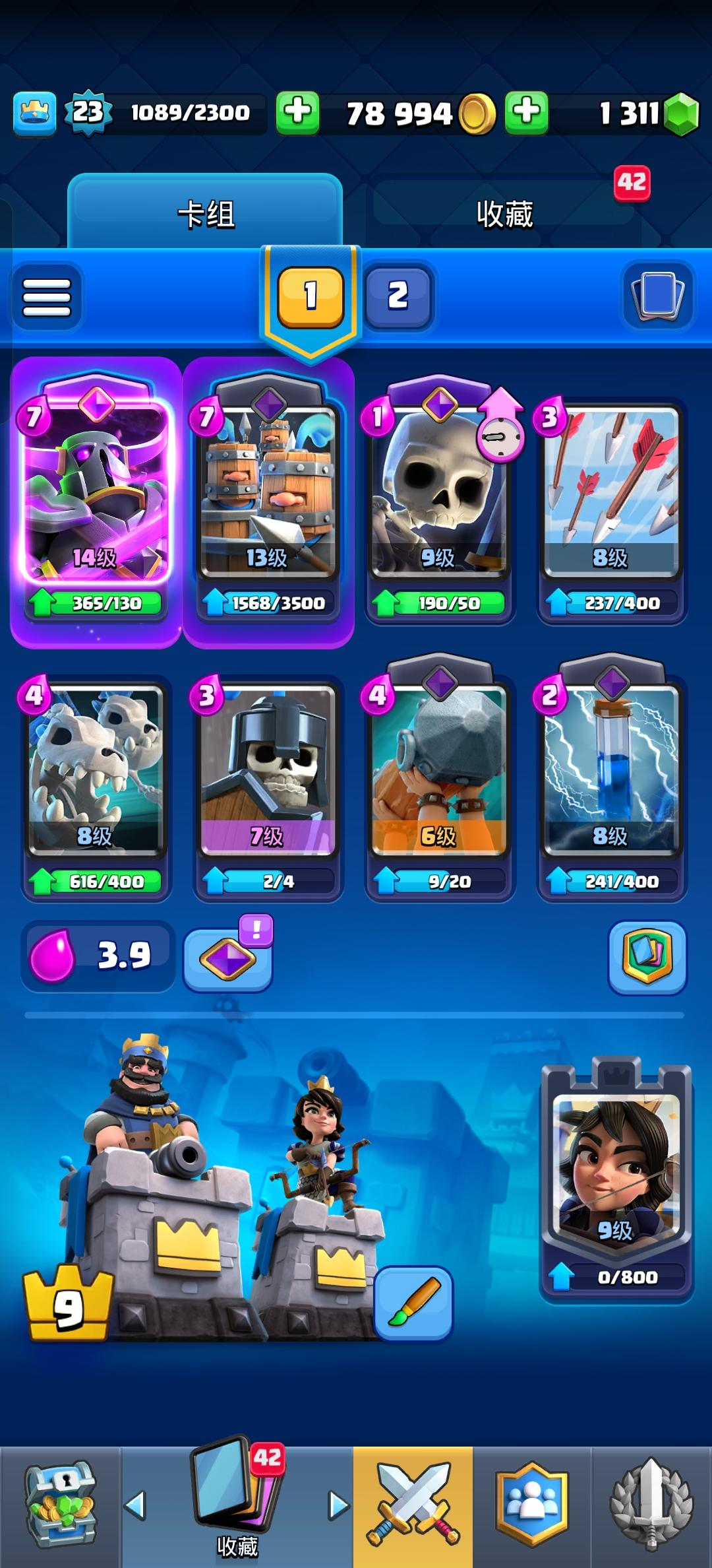 哈喽大家好,这里是韩小萱,听说皇室战争可以一键扫荡了开个新号进来看看怎么个事,今天第一天,目前累充500,随便挑了点顺眼的升级目前1500杯,随便扔两张卡就能赢,太爽啦~
