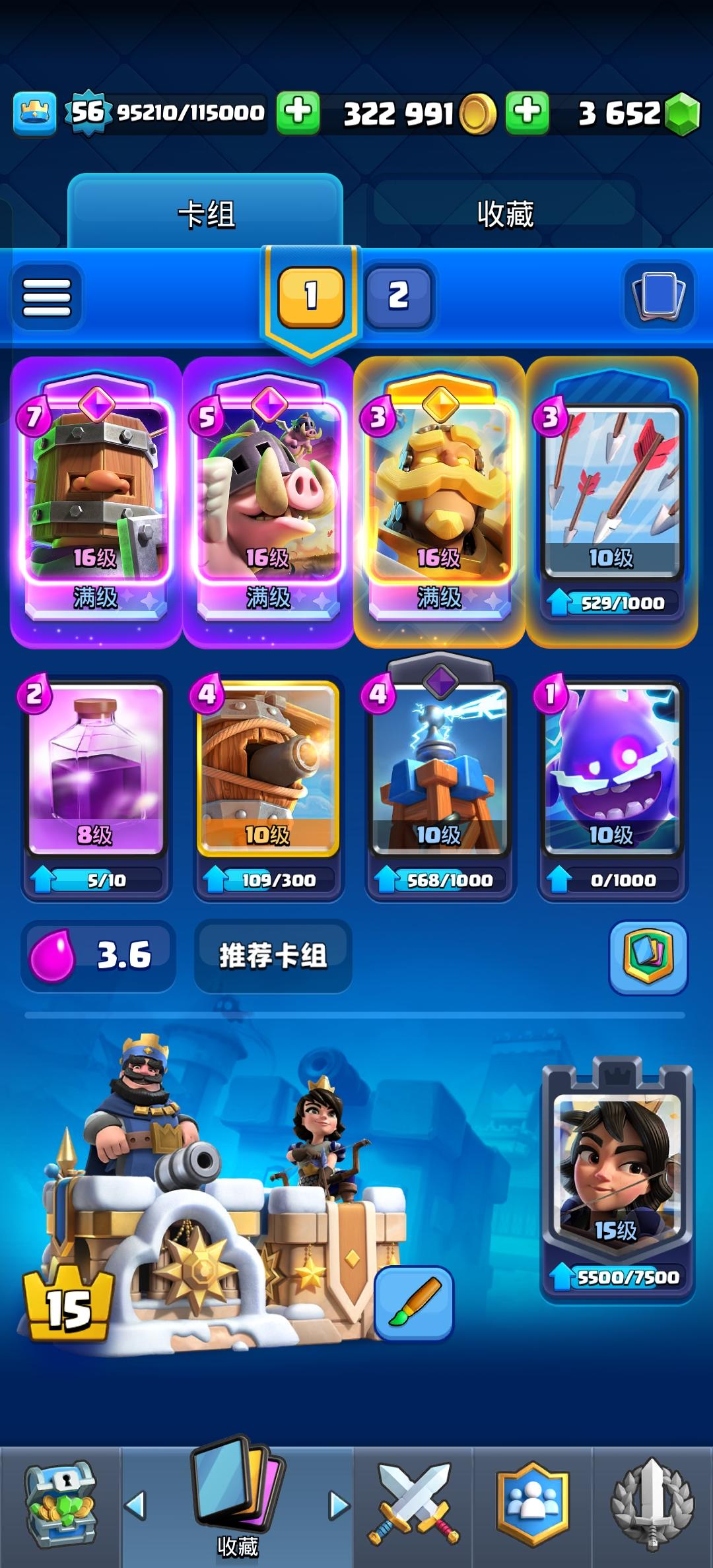 回归几天的小登,目前最高配置了,本来才平均11级卡组,宝箱出的外卡拉了拉等级才上的9500,打的太辛苦了胜率才六七十,觉醒太离谱了,经常一个觉醒直接逆转局势