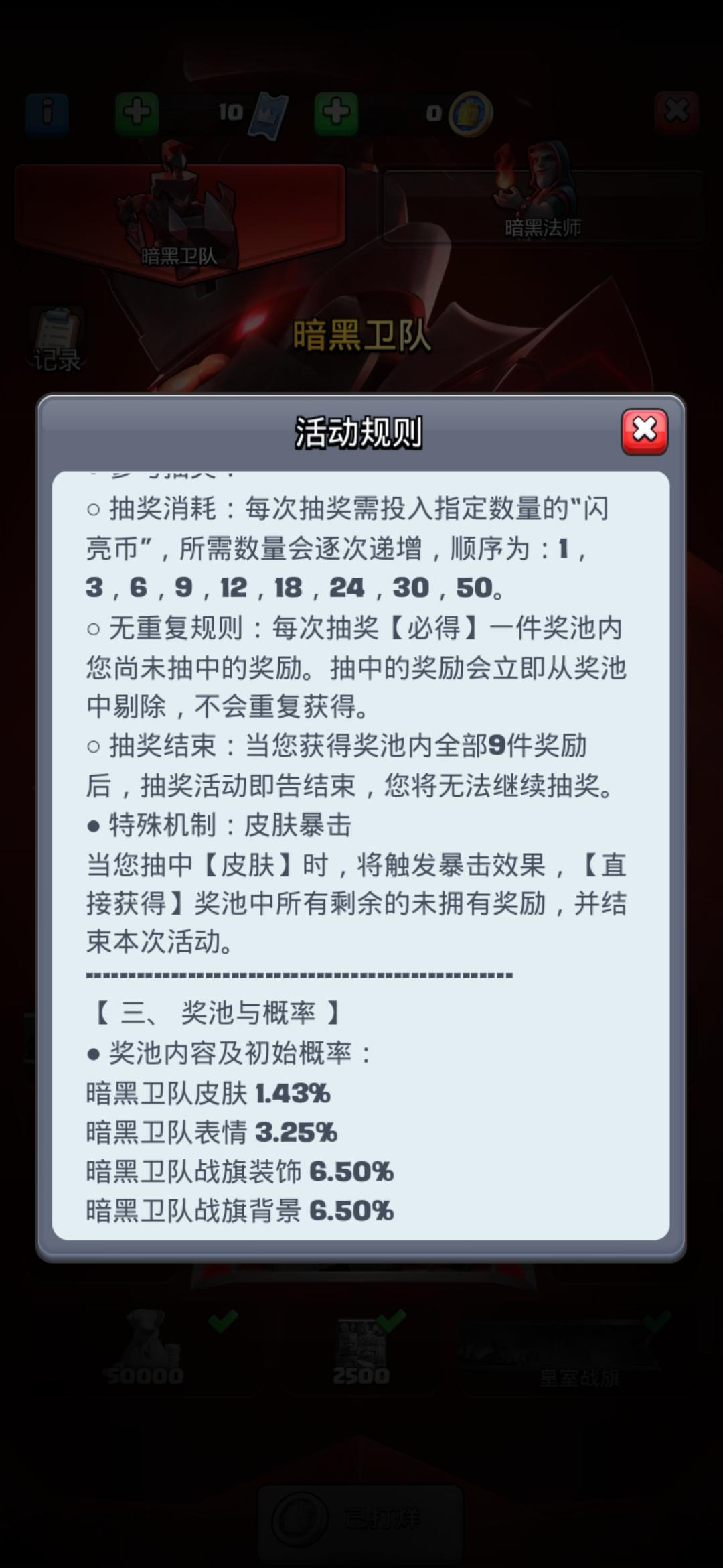 3块爽得奖池全部,才发现这个皮肤暴击机制。欧皇友好奖池。还以为是超骑皮肤,没想到是卫队的无心插柳柳成荫。