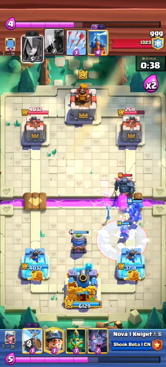 不得不说,打我这种喜欢智斗的 藏一张牌其实挺管用的 前面两分钟我一直在防锤子、羊甚至气球 他 0:39 把冰冻交了直接被我一波了 (因为我知道他没有有效反打手段