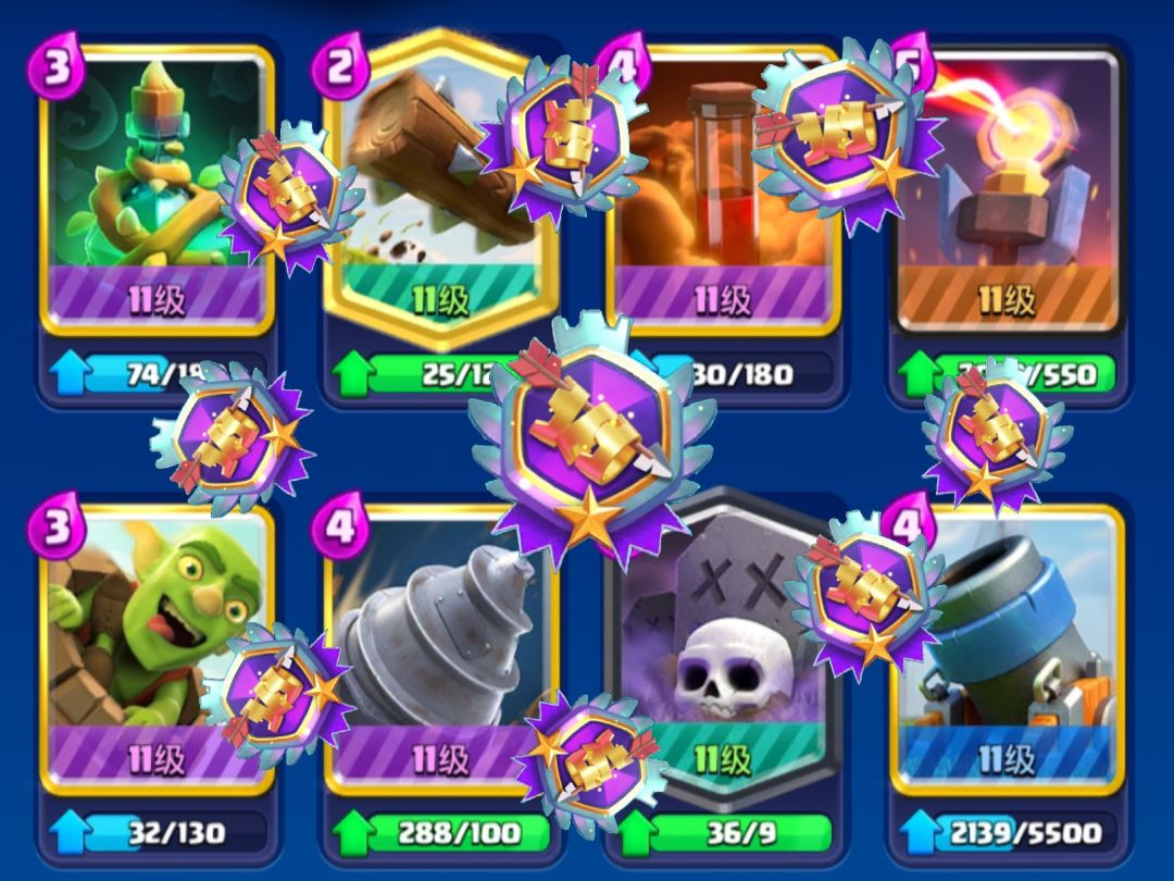 获取条件:对面公主塔不能掉血 + 三冠 思路:开局先激活对面主塔,稍微贪点伤害 然后全程防守,直到 1:26 刷以下三个 buff . 飞桶紫:放在主塔下方边缘 钻机紫:放在主塔右上角边缘 墓园紫:放在主塔上方最顶上 . 0:26 还会刷个 buff,但前提是还能守住 想要用这堆不能碰公主塔的臭鱼烂虾 守住对面啥福的无脑推进,还是颇有难度 . 此外,地狱塔橙、迫橙、毒药橙紫都可以点 需要避免藤蔓橙