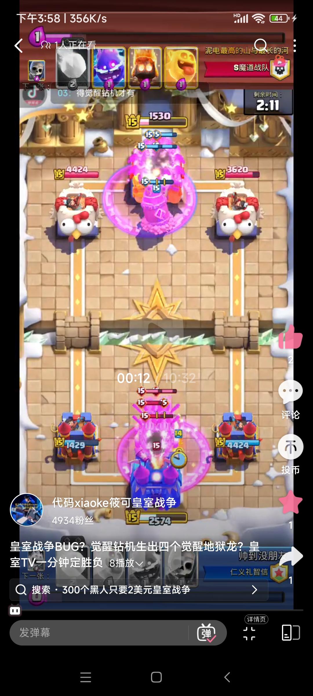 皇室战争BUG马服 觉醒钻机生出 ④觉醒地狱龙🐉