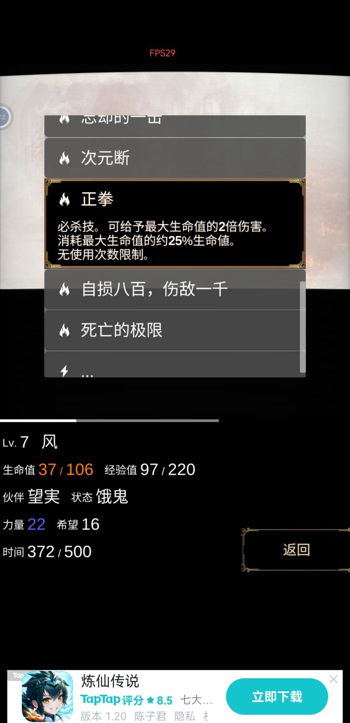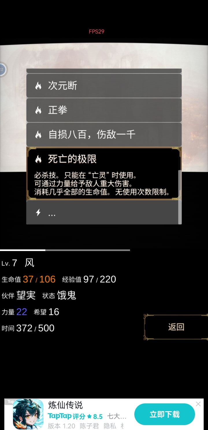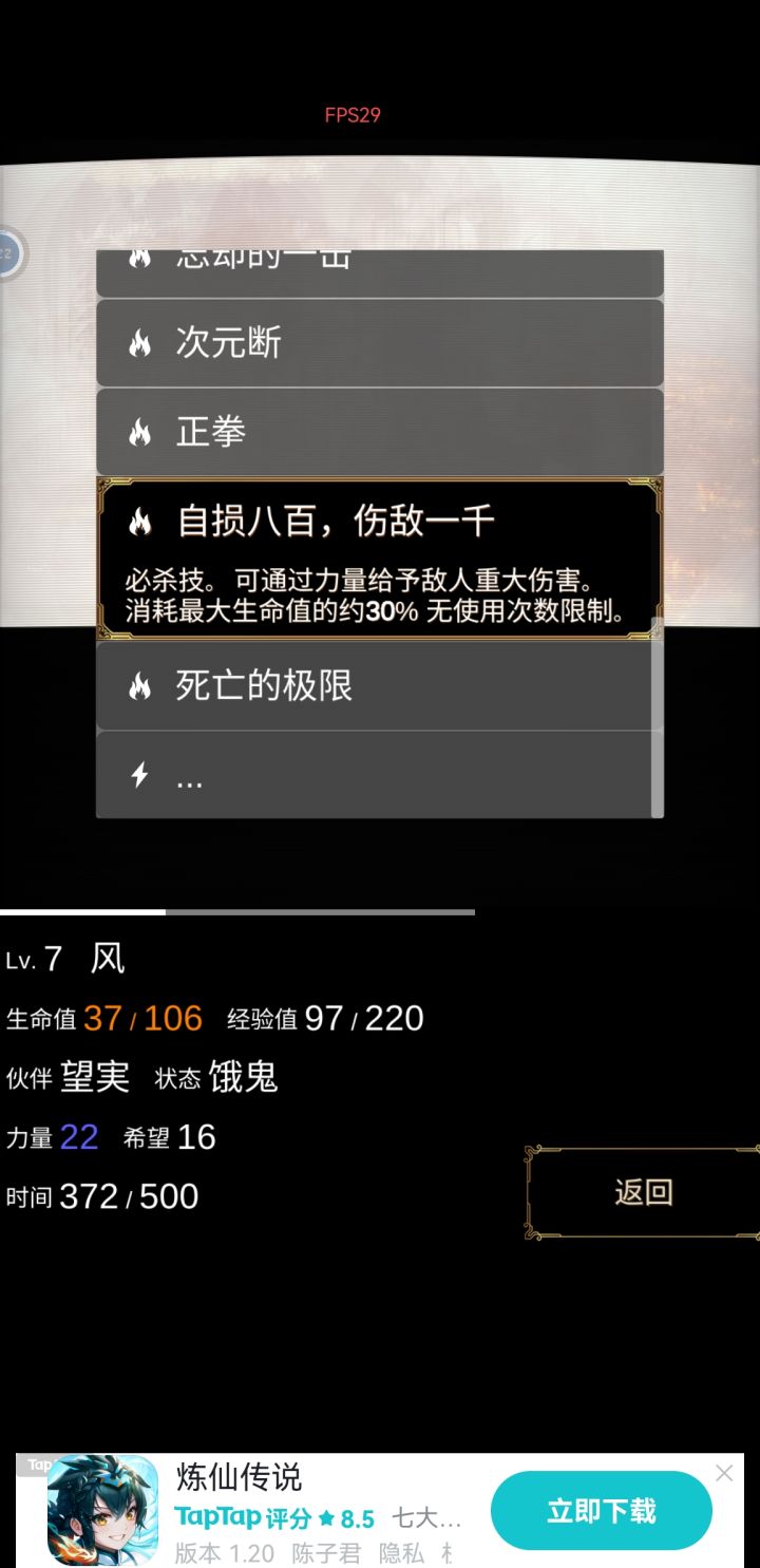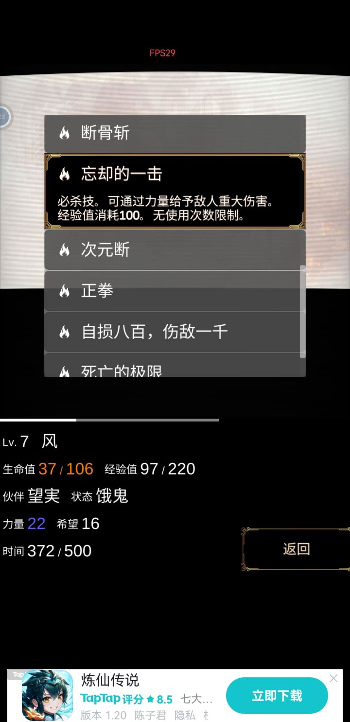 全成就解锁咯,有什么不懂的可以问我,全成就只要两条线都通关就能解锁了,不难的,攻略的话,成长的无奈那一关,就是有钱那一关,在前面打数据怪物的时候要多存钱,因为等前进到中期有很长一段时间不会出现数据怪物给你打钱,会一直出现各种扣钱的活动、商品怪物,如果没钱买的话就会扣血,有钱买会奖东西,所以前面打数据怪物的时候存钱就行。最后一关比较难,而且实践下来,小女孩线感觉比大女孩要难一点,关键记住一点,早日变死神早日轻松,因为这关很多怪物都会给你挂上负面状态,特别是饿鬼最恶心,让你无法获得经验,而变成死神虽然会加速消耗时间,但是可以免疫所有状态变更,力量也变双倍,变死神需要“死神的镰刀”,在亡灵状态下才能使用,所以要先获得变亡灵的道具。最前面打亡者怪物的时候,有几率掉那个“亡灵的肠子”,可以让你在“饿鬼”“苦行”“火焰”等任一状态下变“亡灵”,变成“亡灵”后就可以使用“死神的镰刀”变死神了,最后一关除了“死神”状态其余状态都不推荐,得不偿失。而且一定要在渡船即搭档离去前(走到三分之一的地方搭档会离去,选小女孩线搭档就是眼睛前辈,选大女孩线搭档就是大女孩,搭档最大的作用就是可以帮你更改负面状态,前面也说了,最后一关每一个小怪都能给你挂负面状态,很恶心)变为死神,因为失去搭档后,直到终点为止,你都没有任何改变负面状态的能力(最后一关没商店,没道具),唯一的一个技能“冥想”可以消耗时间取消负面状态,但是刷出来很看脸,要是刷不出“冥想”技能又过了渡船没搭档,那么别想走到终点。另外,如果实在脸黑,前期刷不到变亡灵的道具,留意牛头怪,他有技能可以让你变成“亡灵”,这个时候直接用“死神镰刀”变死神就行。另外的话就是那个深渊能打都要打,打通了就会随机给一个技能,技能是很有用的,关卡最终boss基本上只能用技能打,纯靠普攻是打不过的,最好学到那几个好的技能去打他。
