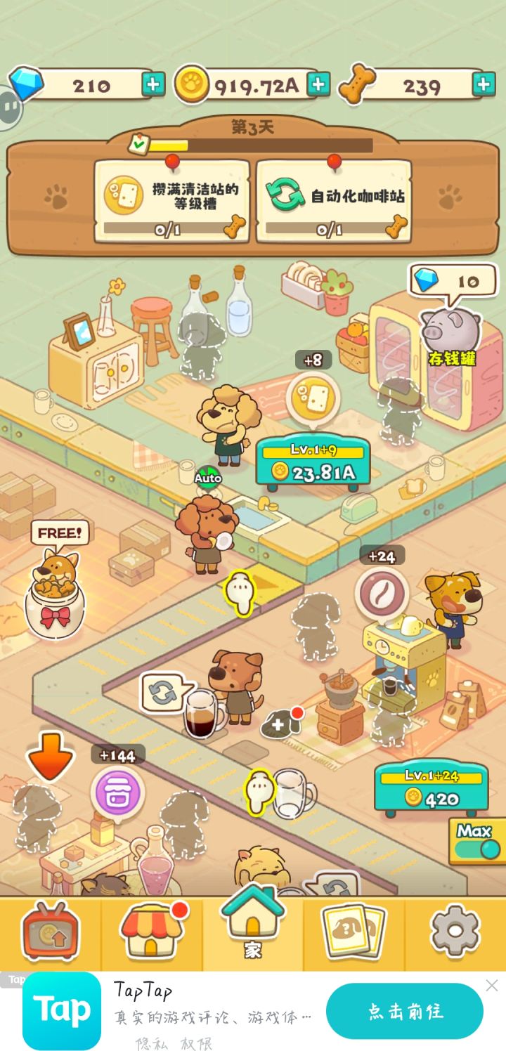 玩法:前面手动十分钟,抽到狗狗卡之后基本就是自动化还是很方便的,扔在那里就可以刷刷刷当个挂机广告工具人了。