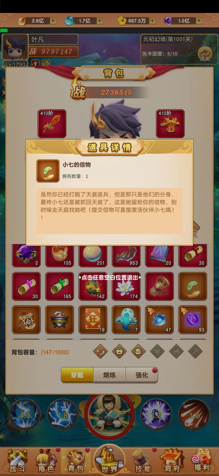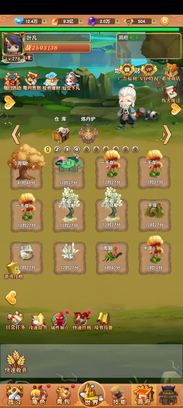 东海点玩基本就是每天买桃子推关卡了,注意没升一个大境界钻石商店的购买次数会重置,可以多买点桃子,这样发育到2000万左右就能渡过天劫了,9个天劫要都打过