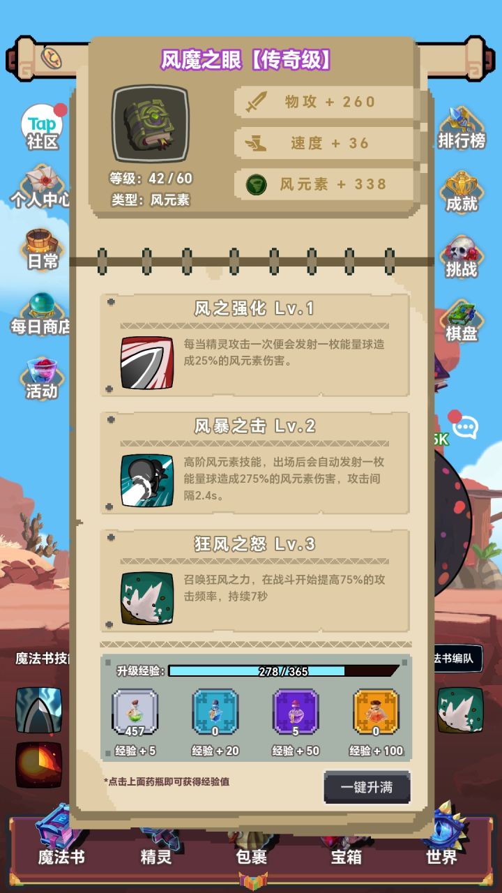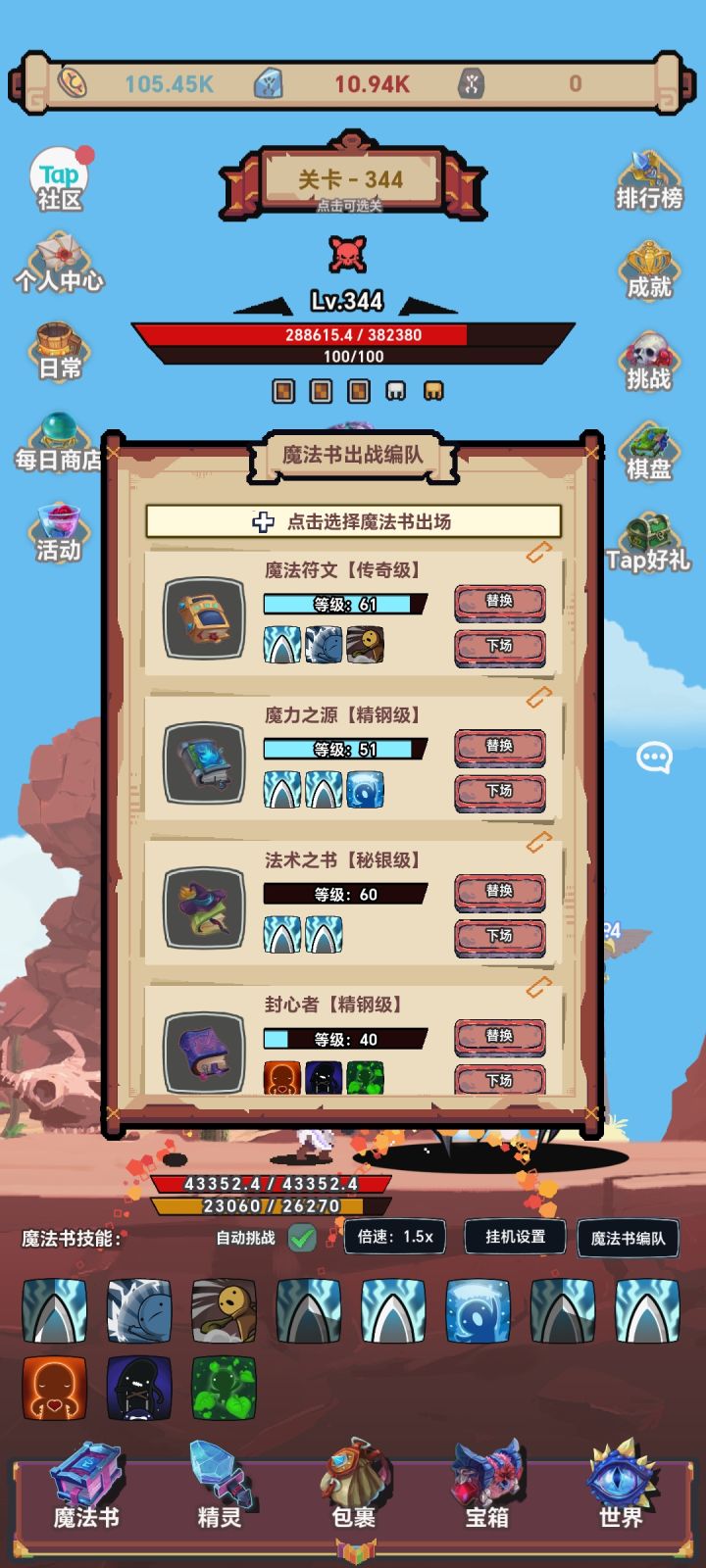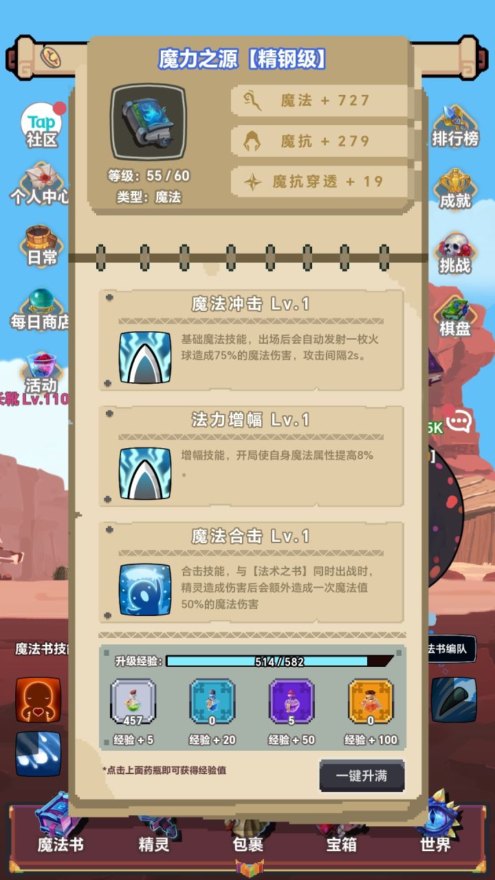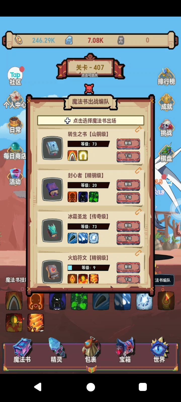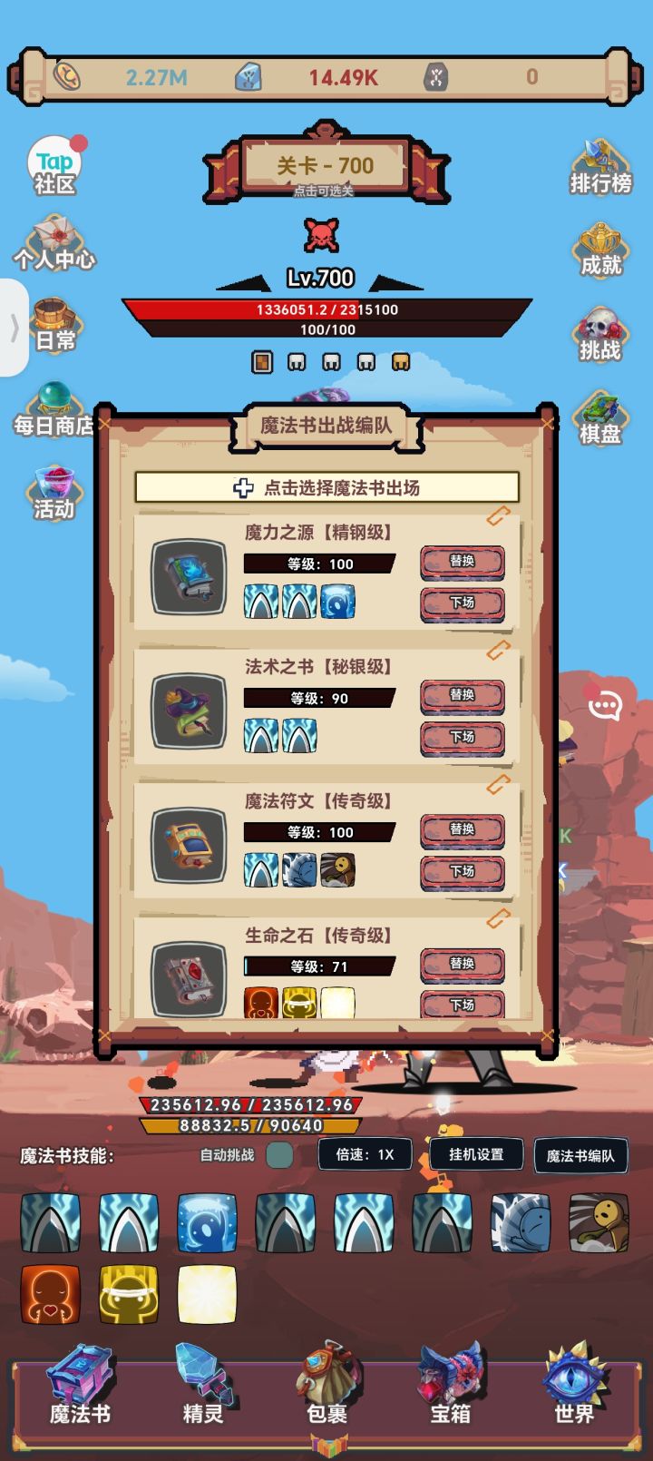 作为一个要那么久踩坑那么久的萌新,我要告诉大家我踩过的坑。 圣物看清楚上限有几个,随着等级提高会增加,千万不要选多,选多了不出来还会把格子吃了导致少一个圣物,还会打乱圣物的节奏甚至重选(我的4W多砖石QAQ) 魔法书的属性不用上场,升级就有了,优先升级旅行日记,但是不用上场,等级跟魔法书技能没有关系 打600级BOSS才开始需要选抗暴 万能石够当前用就好,不比多买。 攻速收益很低,不用特