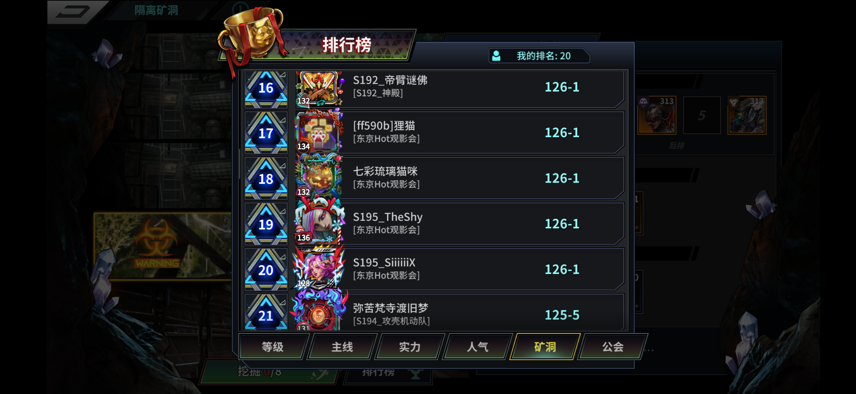 零氪瞎玩了一星期,目前矿洞20-4,主线13-10,经常碰到后排被秒,只剩前排两个活着最后被怪打死,这游戏一直卡进度一点都不顺畅啊(每天卡每天卡),好歹让我多体验下玩法再卡关吧—————————10抽红唇出了那个拉弓的,把八重云换下去了,现在卡在矿22-10,主线13-20—————————换阵容了,如图2,又推不动了…