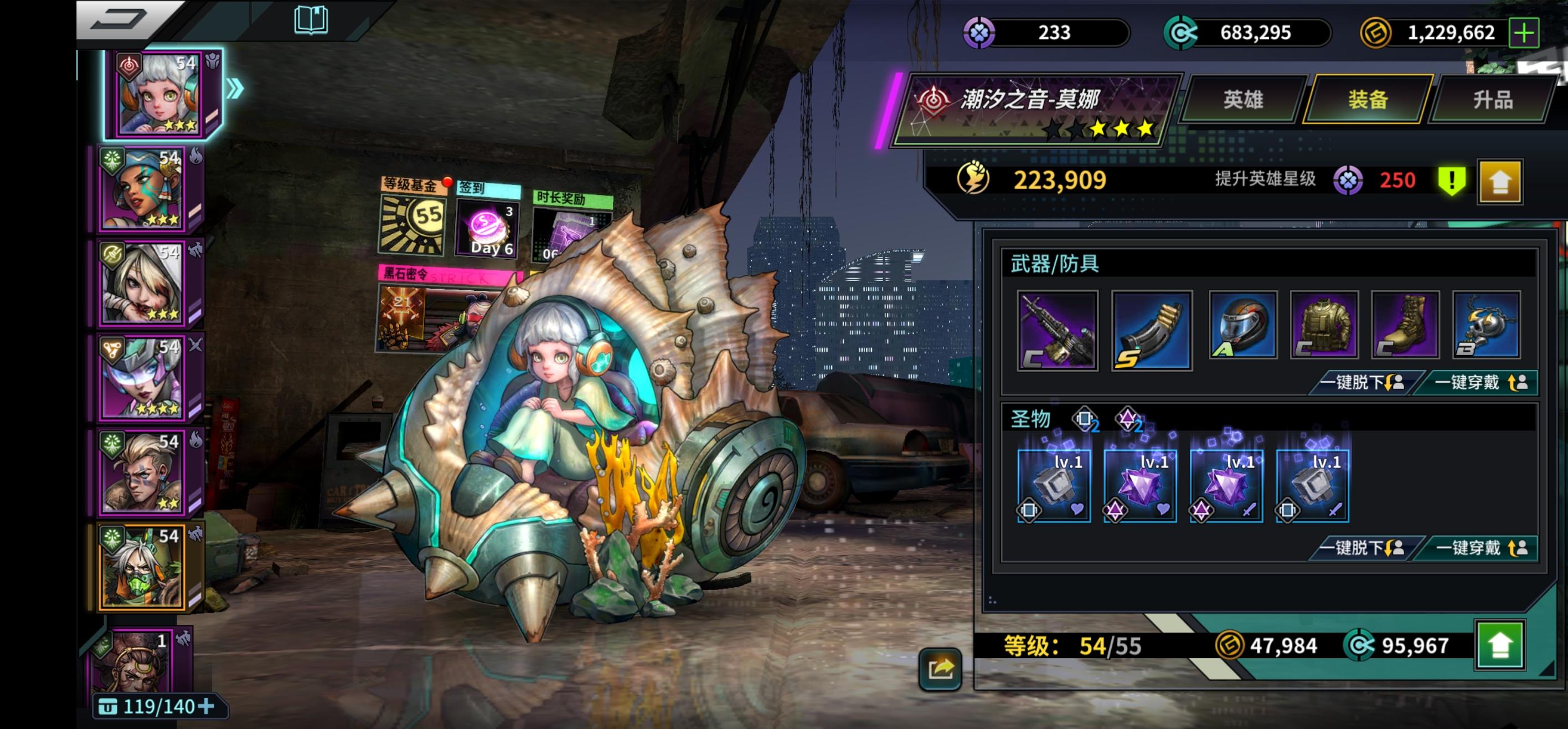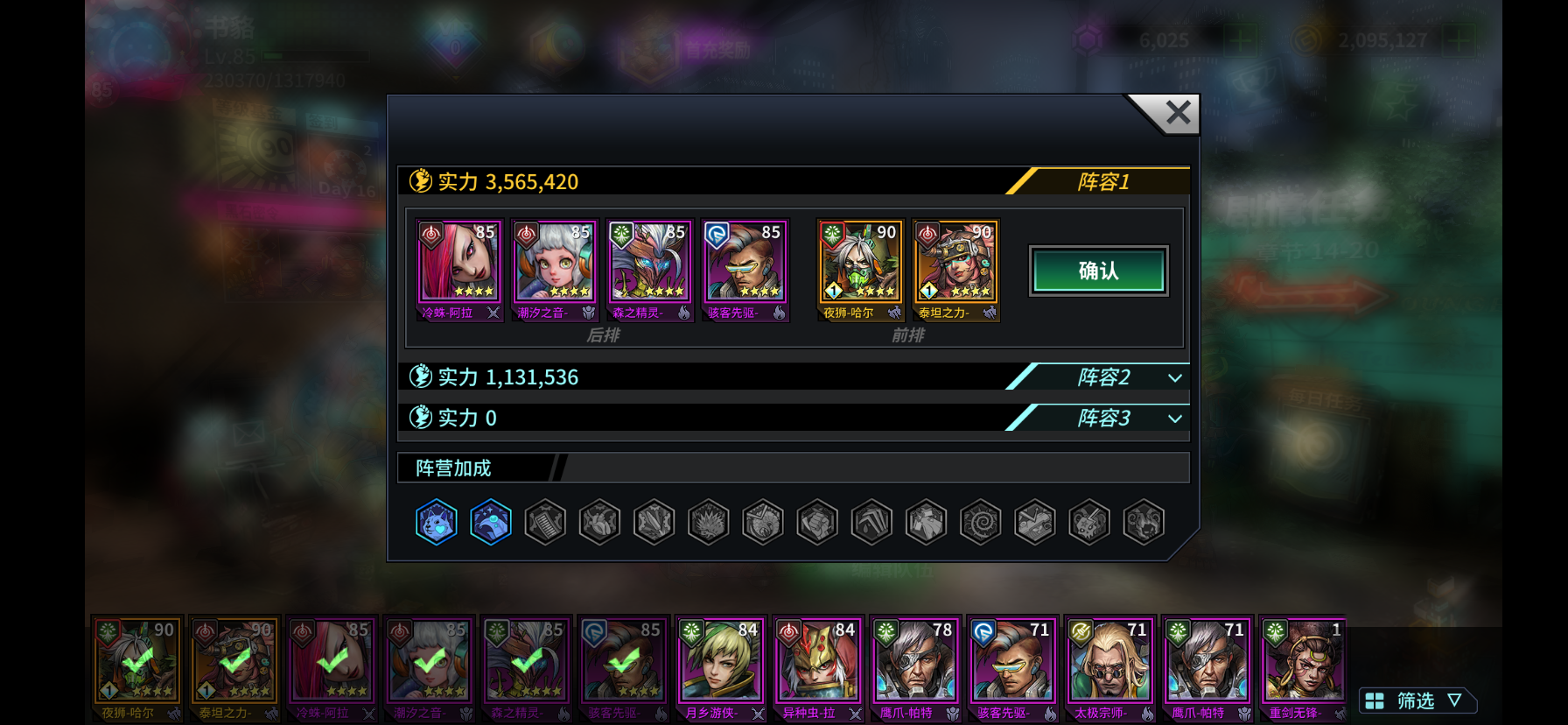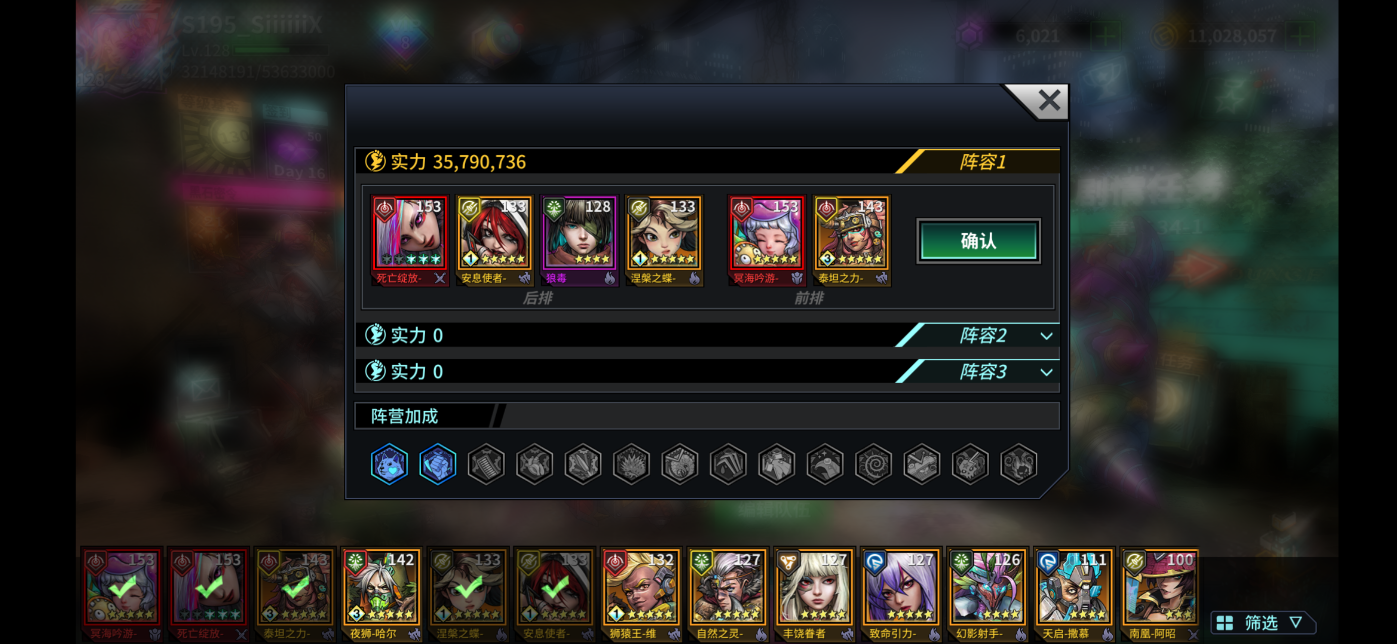 目前就是这个么个状态,不知道上谁。这次活动有没有必要把栩栩搞出来,还是攒着等蜘蛛。现在全靠蕾娜输出。